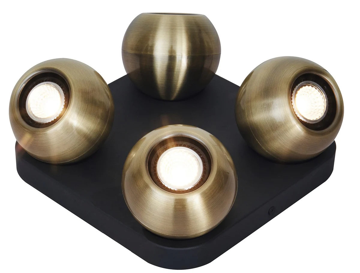 Verfügt über eine quadratische LED-Deckenleuchte mit 4 Spots in Schwarz und Bronze, 4 x GU10
