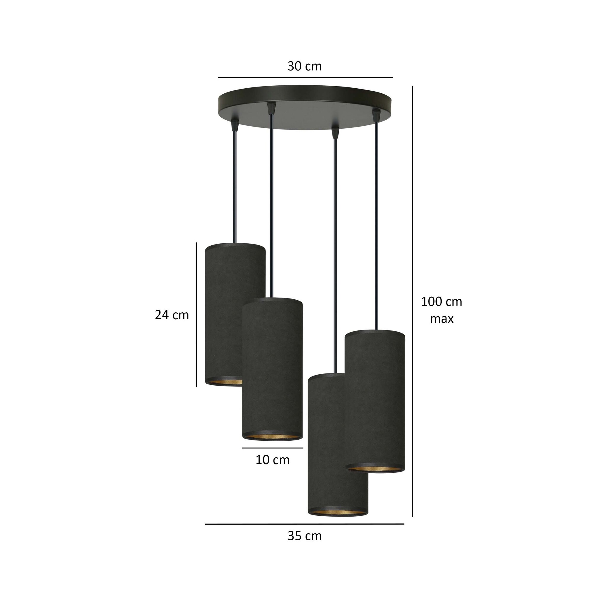 Spezifikationen Albertslund große runde Pendelleuchte mit 4 schwarzen Röhren 4x E27: