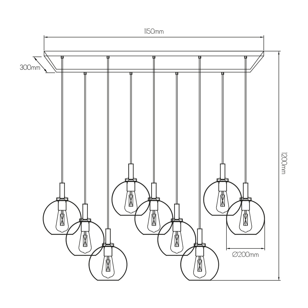 Spezifikationen Aris gigantische Hängelampe E27 9L Schwarz, Klarglas 9x Ø200mm: