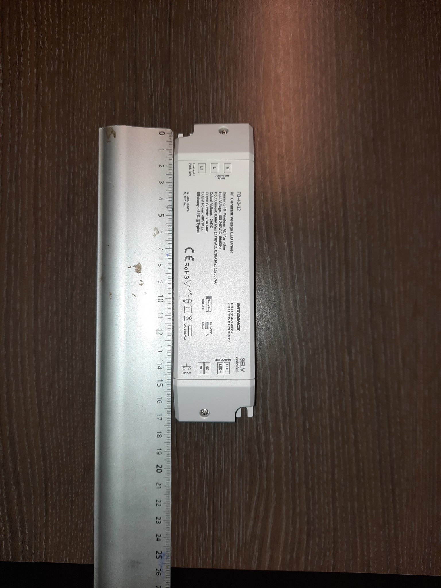 Treiber dimmbar, 24 Volt Gleichstrom bis zu 40 W, geeignet für Feuchträume, ggf. mit Fernbedienung