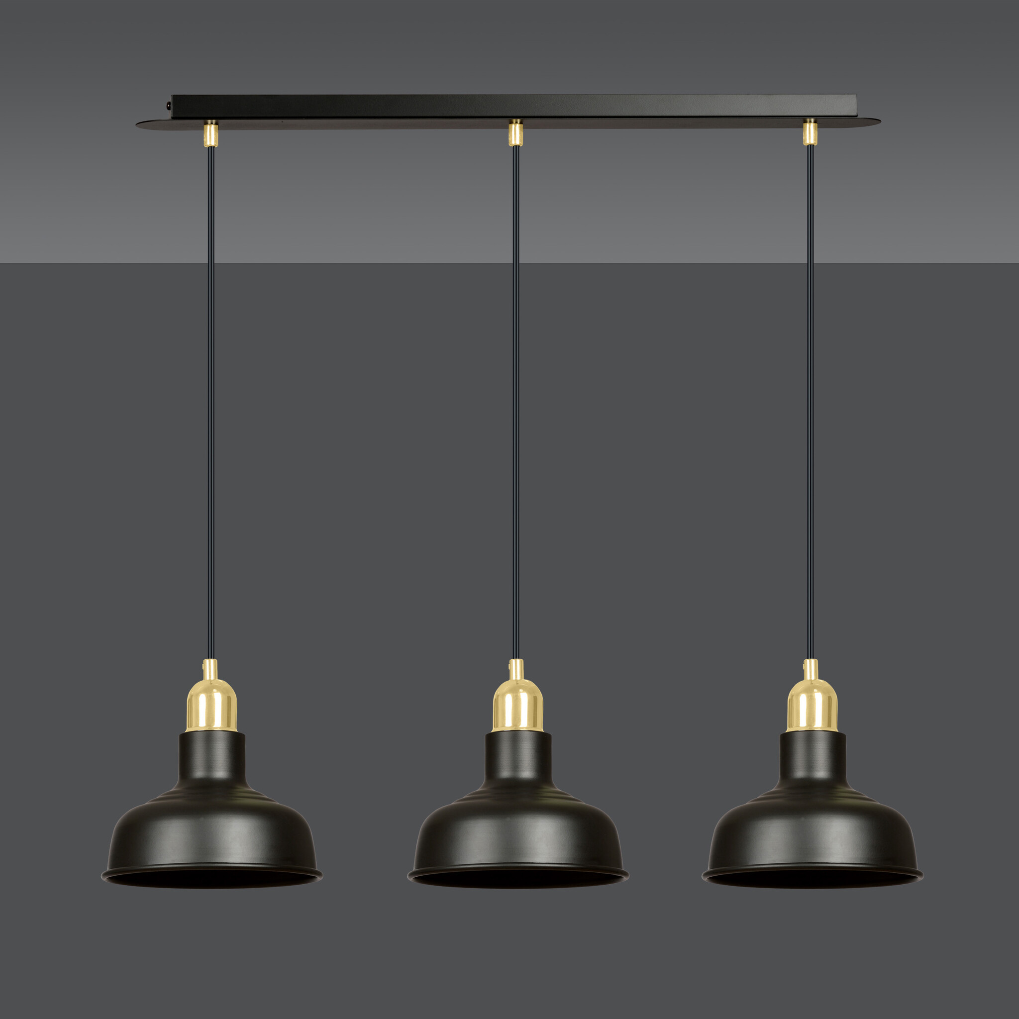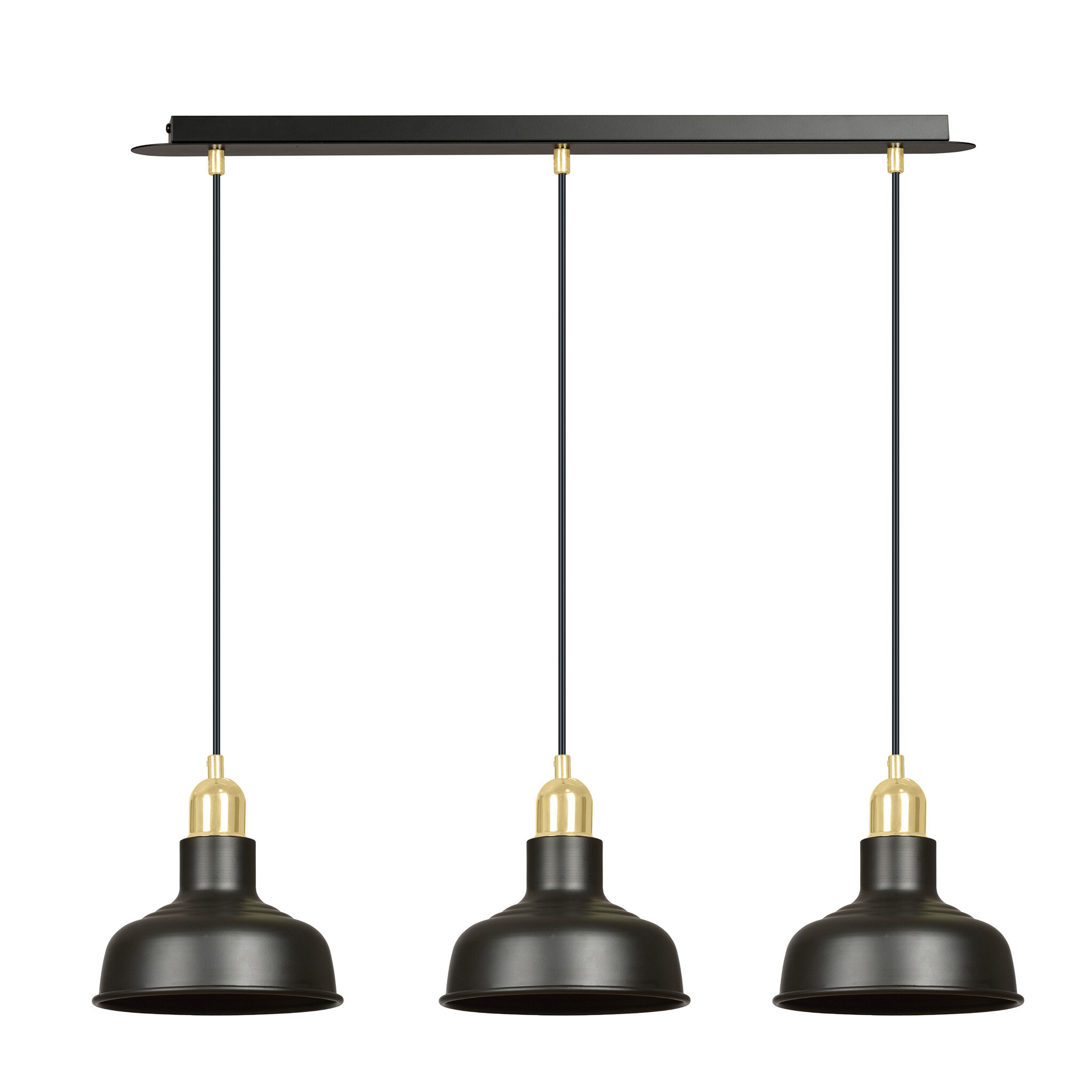 Spezifikationen Egedal lange 3x E27-Hängelampe schwarz mit Gold mit eleganten Kuppeln: