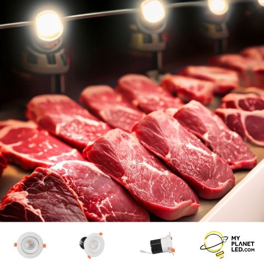 Suchen Sie einen Design-Einbaustrahler 20W? Dann werfen Sie einen Blick auf diesen Einbaustrahler, der rotes Fleisch beleuchtet, 20 W, 110 mm bis 130 mm Loch, 142 mm außen. Die abgerundeten Kanten dieses Einbauspots machen ihn zu einer einzigartigen, schönen Leuchte! Speziell entwickelt für die Beleuchtung in Fleischereien, Metzgereien und Theken mit Fleisch, Interesse? Dann lesen Sie weiter!
