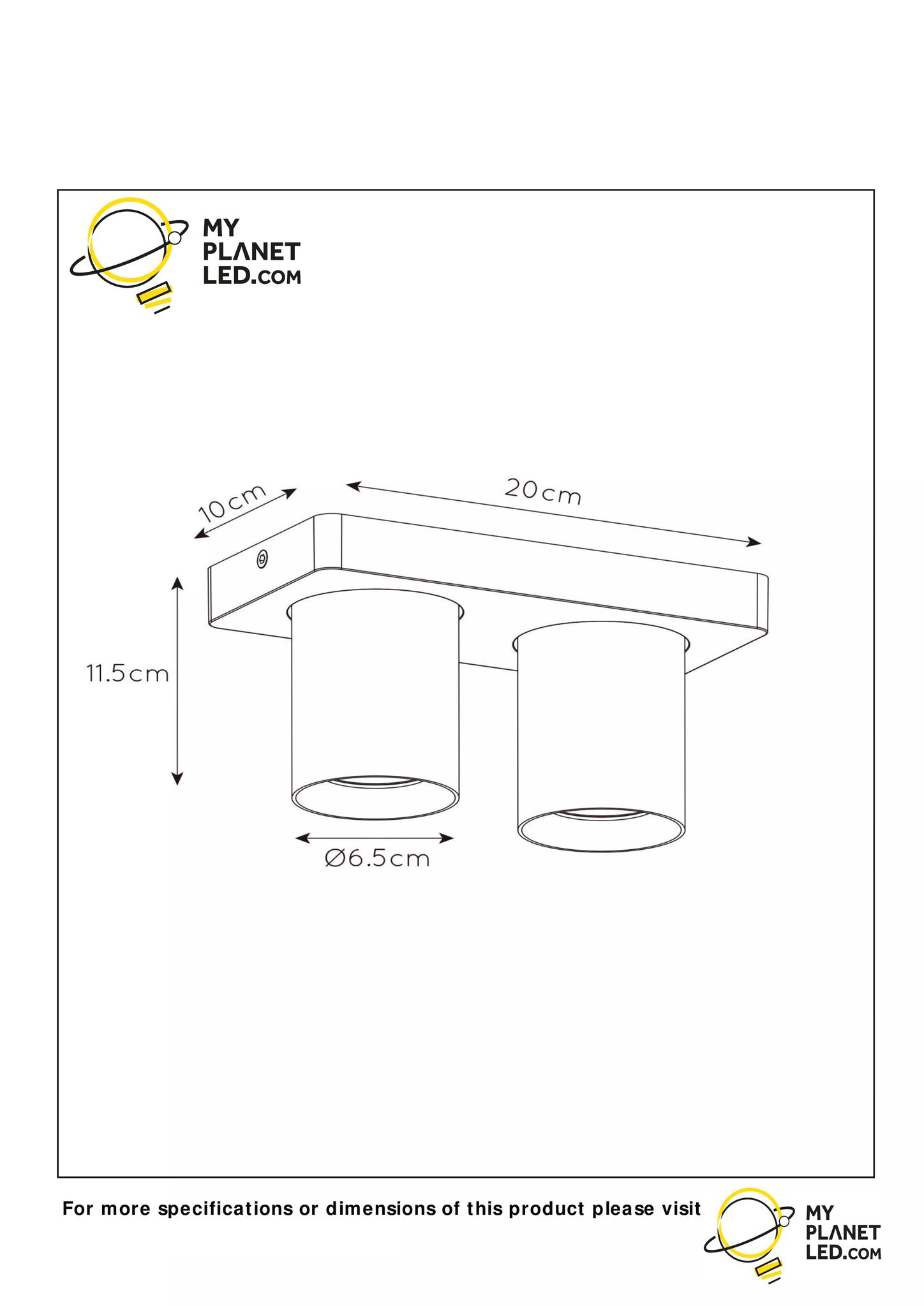 Technische Daten einfacher zylindrischer Deckenstrahler LED DIM GU10 2x5W 2200K/3000K schwarz: