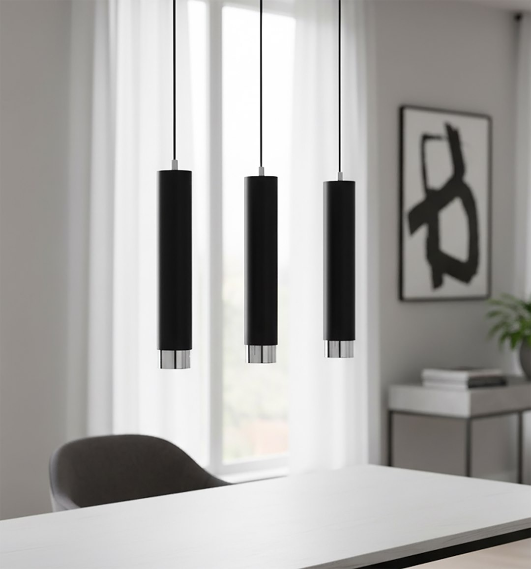 Emibig KIBO 3 Pendelleuchte - Modernes Design in Schwarz und Chrom