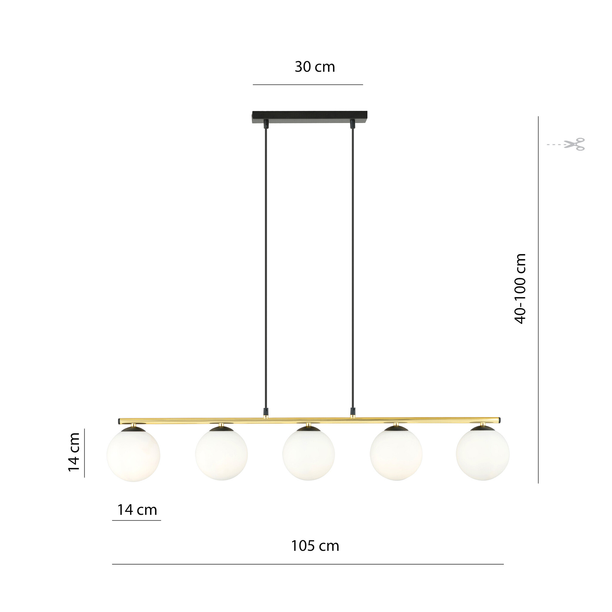 Spezifikationen sehr lange schwarze und messingfarbene Hängelampe 5x E14 Milchglasbirnen:
