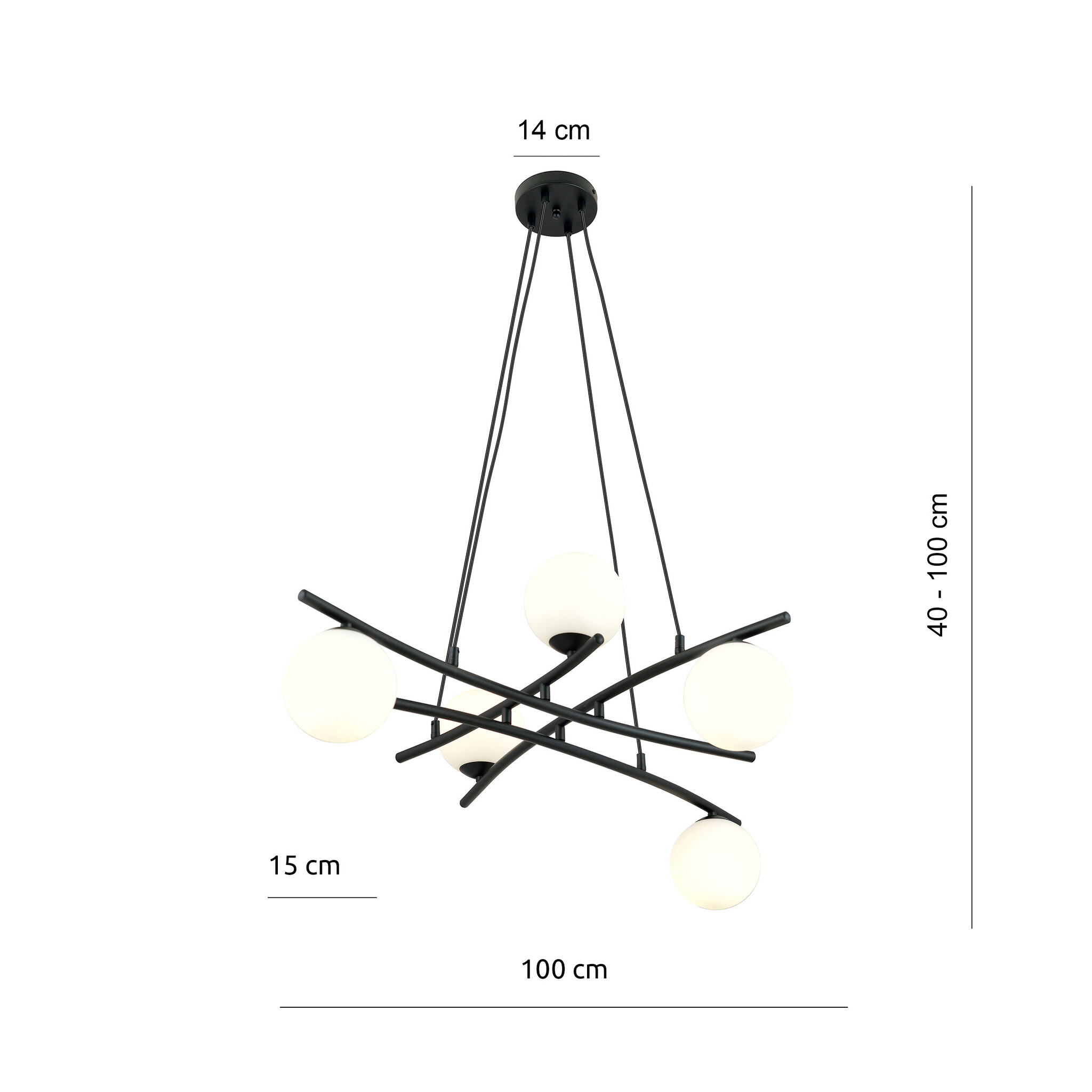 Spezifikationen fantastische schwarze Hängelampe mit 5 opalweißen Glaskugeln E14: