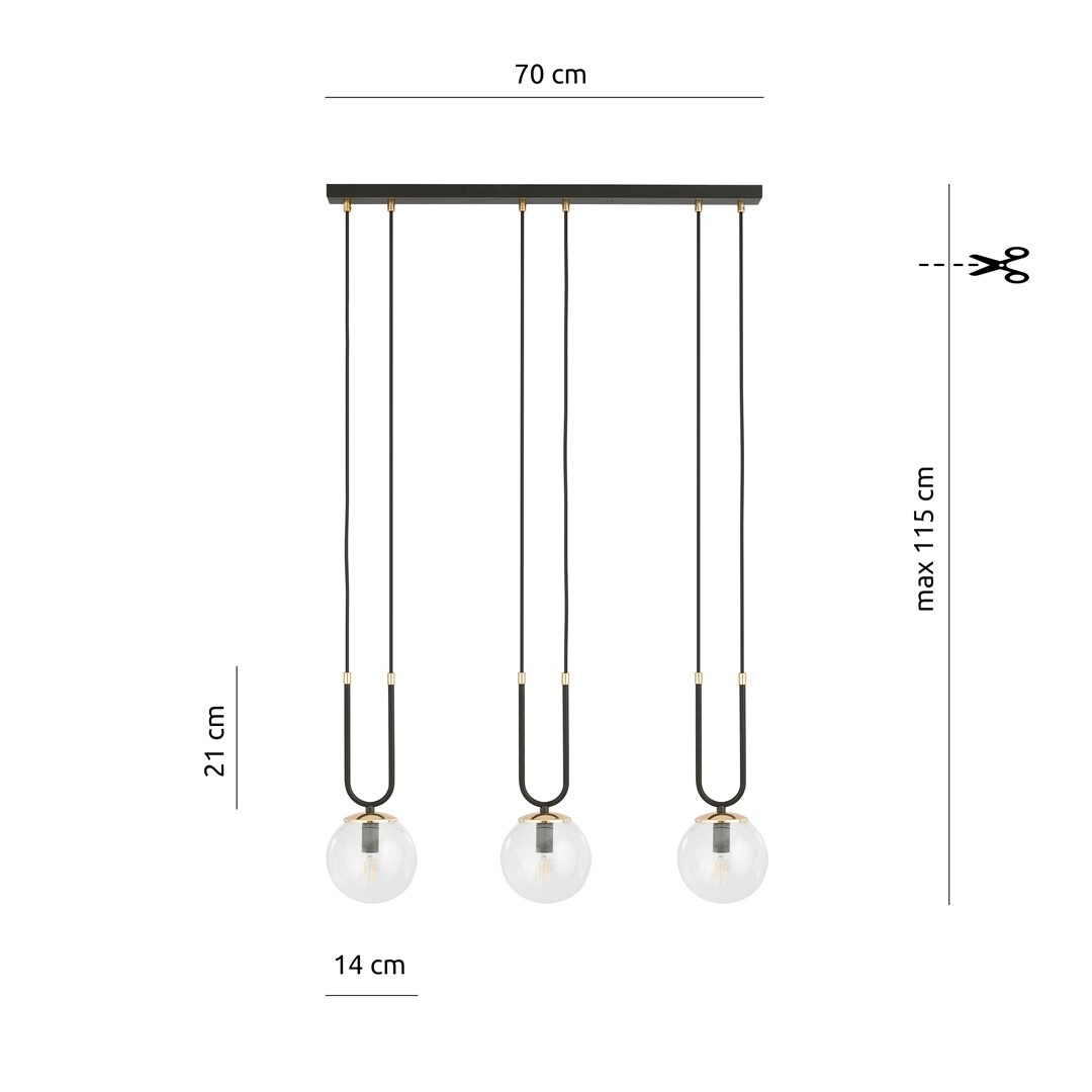 Emibig GLAM 3 Schwarz/Transparent - Retro Pendelleuchte für stilvolle Räume