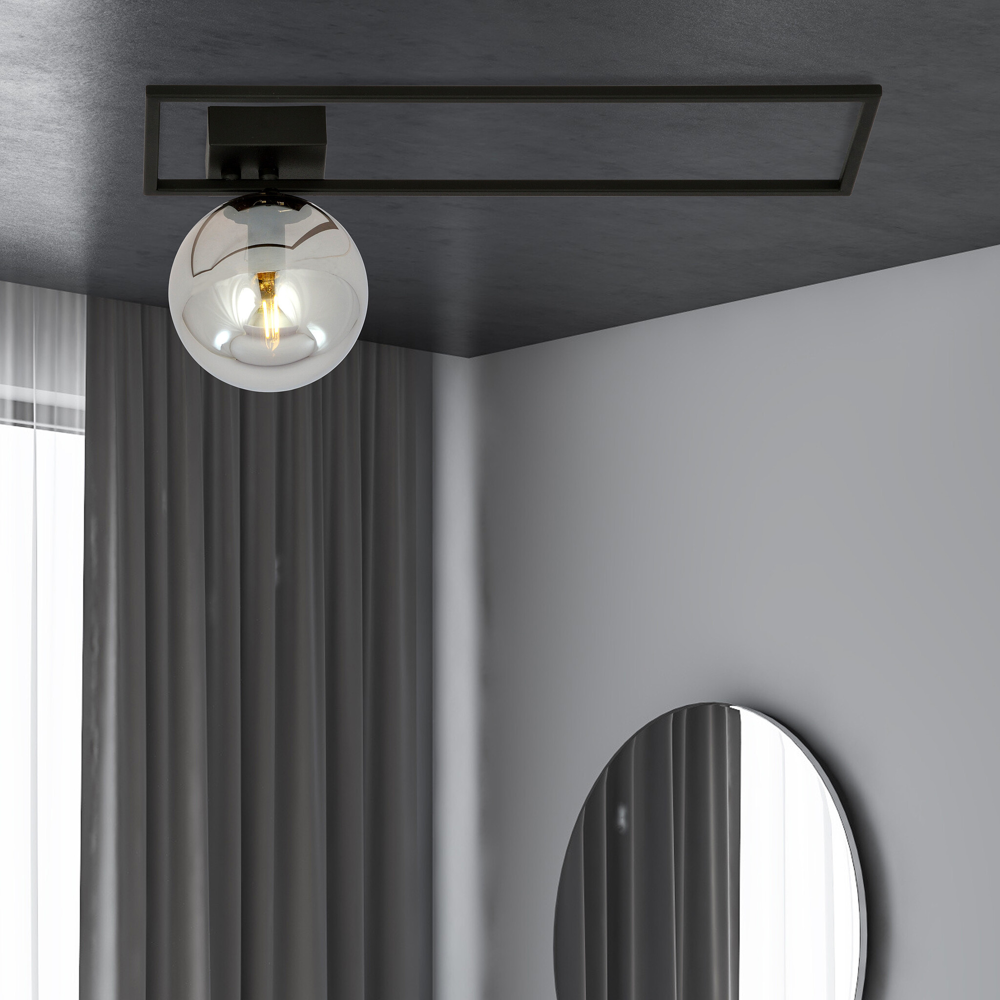 Große Design-Deckenleuchte Horsens in Schwarz mit Rauchglaskolben E14