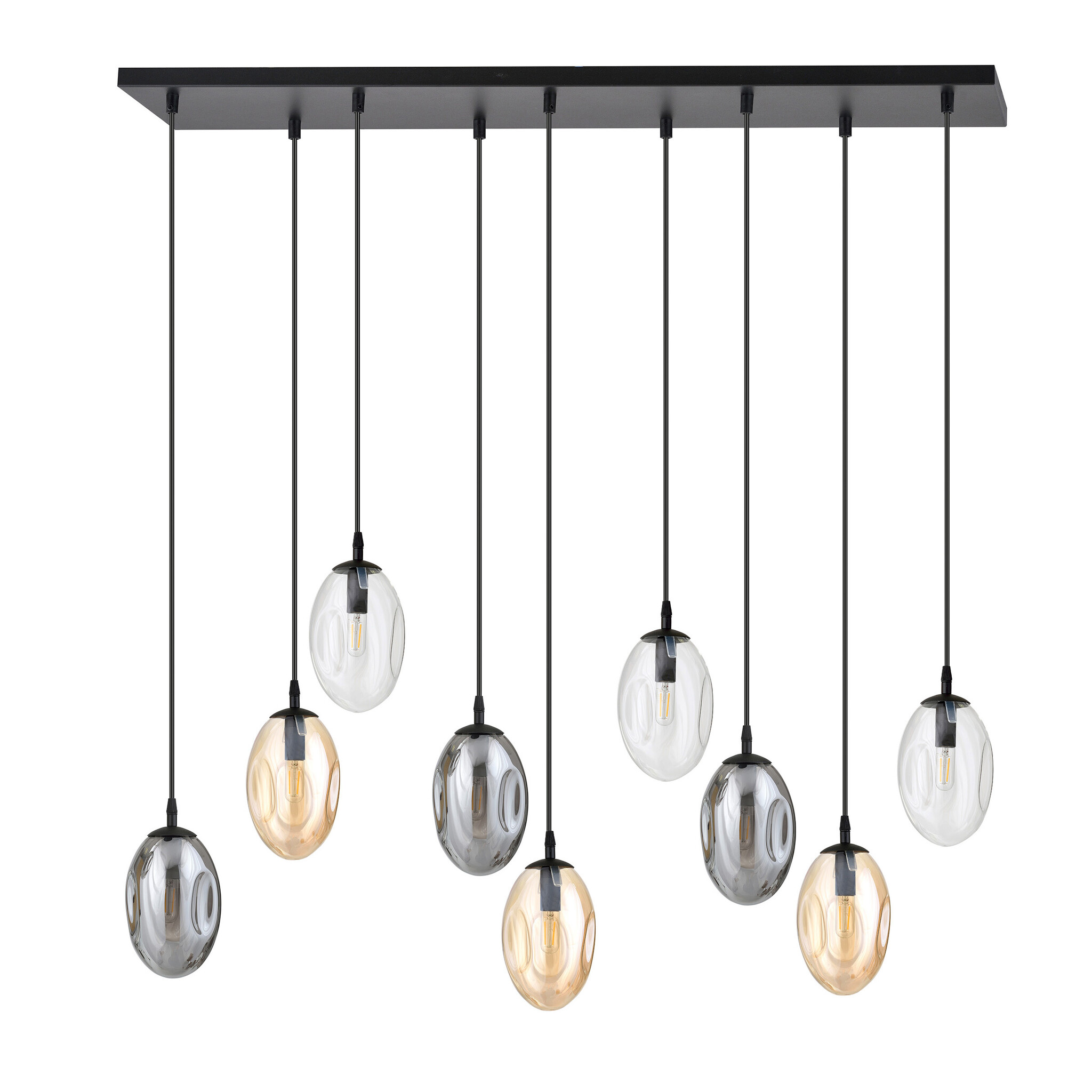 Große Hängelampe für über dem Tisch mit 9 verschiedenen Glasanhängern E14