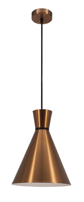 Diese Hängelampe über dem Esstisch mit 320 mm H-Designkegel und E27-Fassung ist aufgrund ihrer konischen Form eine echte Augenweide. Es ist in den Farben Kupfer, Weiß oder Mattschwarz erhältlich.