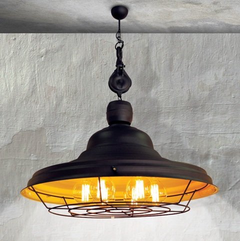 Diese rostbraune gelbe E27-Industrie-Hängelampe mit rundem Gitter 970 mm hat einen echten Vintage-Look und wird als Wohnzimmerbeleuchtung, Hotelbeleuchtung oder Restaurantbeleuchtung verwendet.