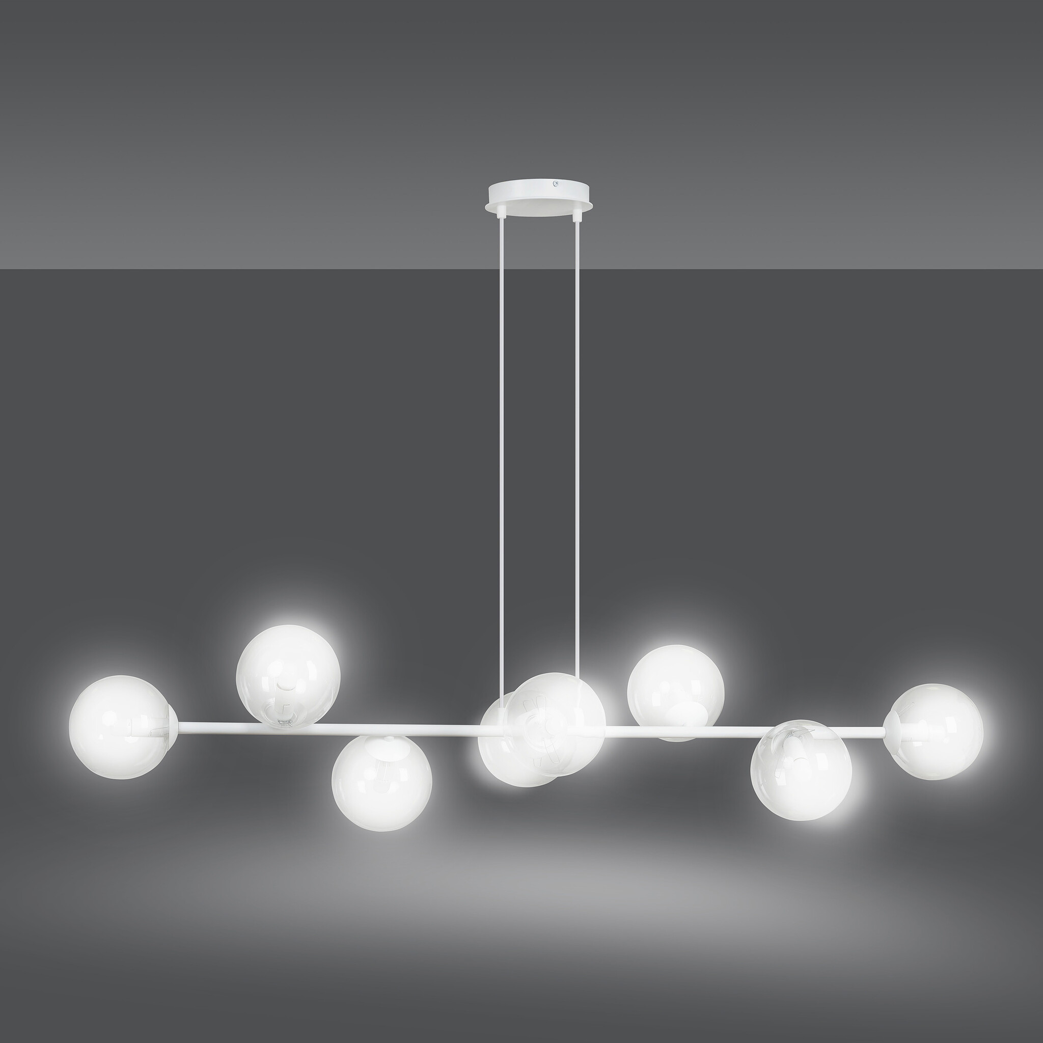 Herlev elegante weiße Design-Hängelampe mit 8 transparenten Glasbirnen E14