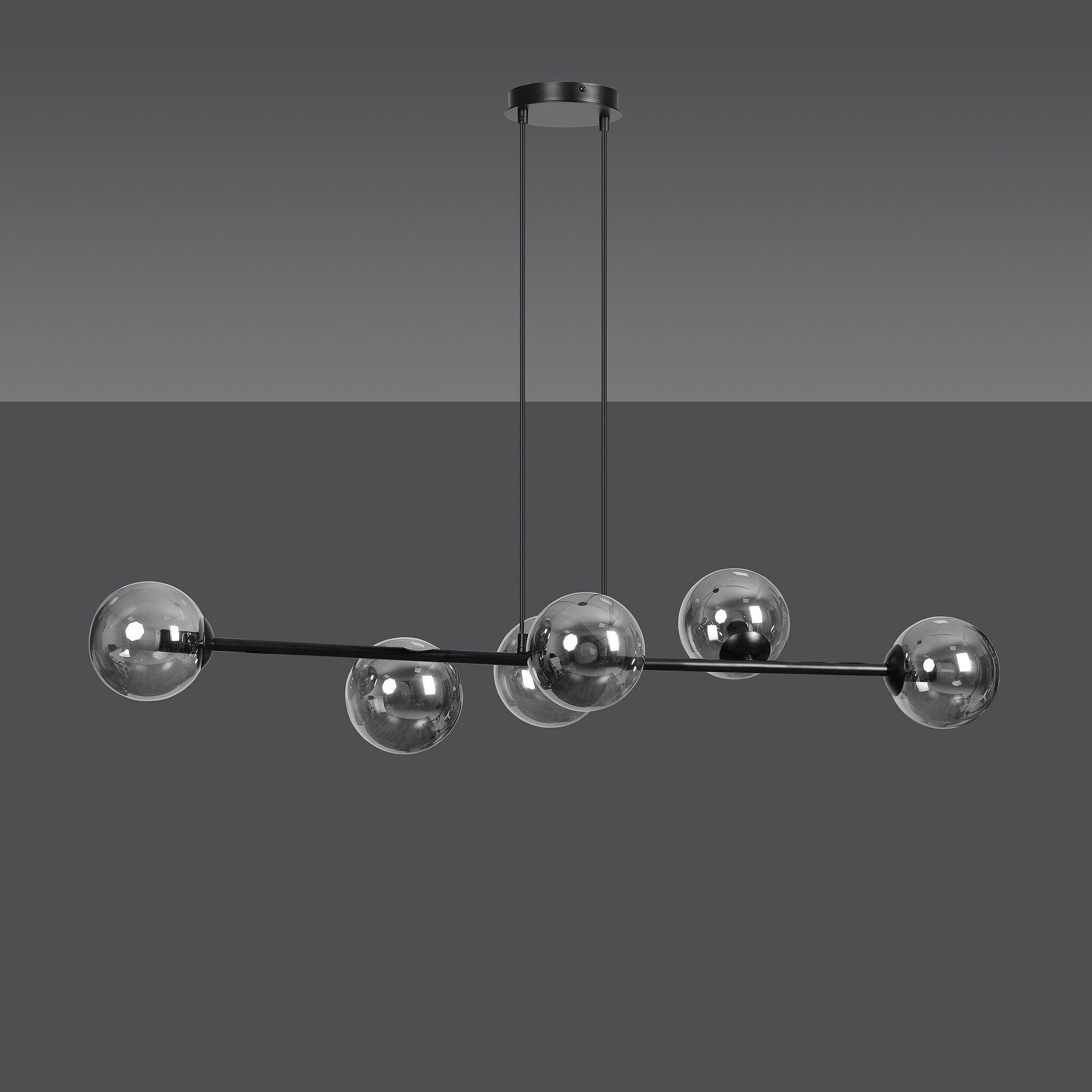 Spezifikationen Herlev schwarze mittelgroße Hängelampe mit 6 schwarzen rauchfarbenen Glühbirnen E14: