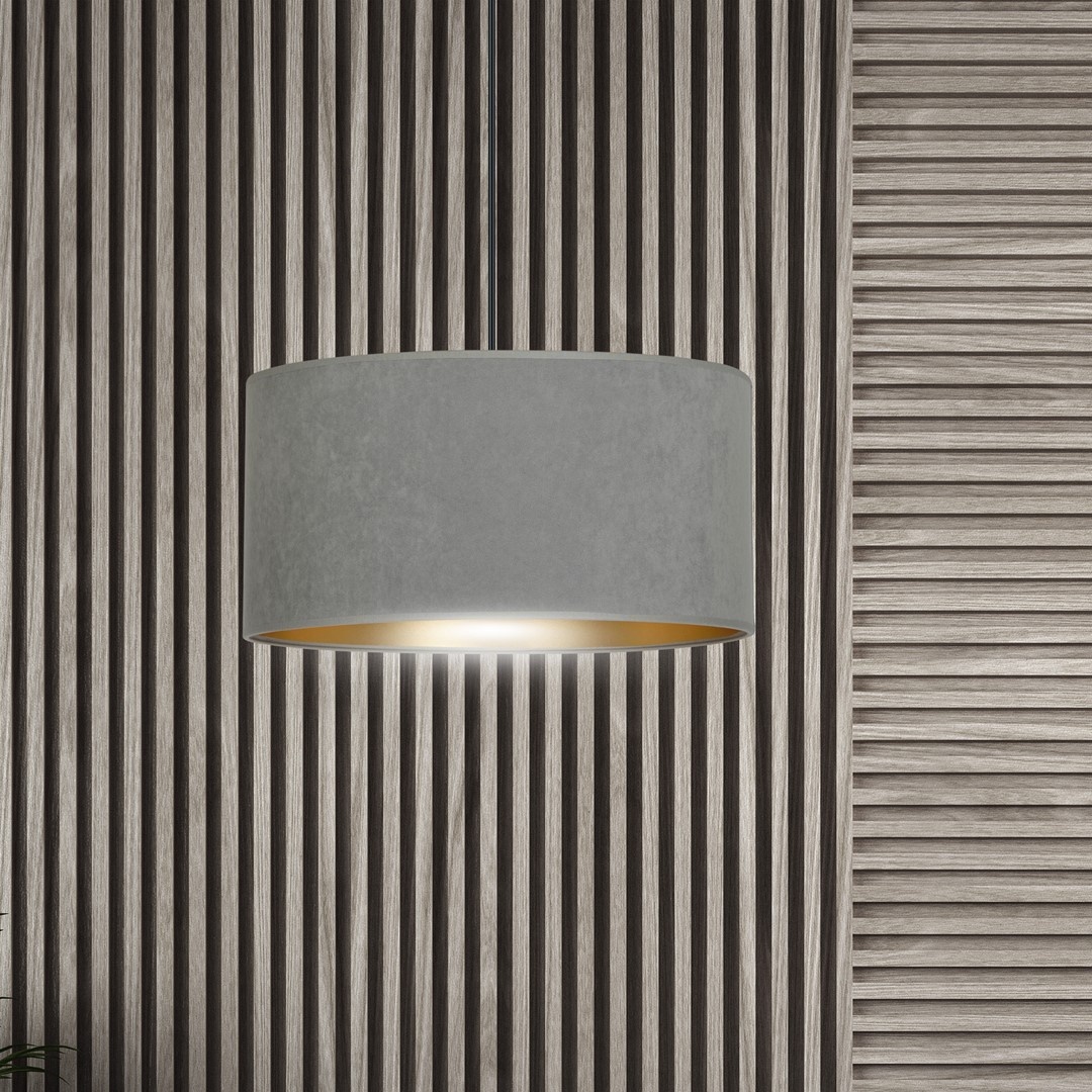 Die HILDE 1 BL GRAY Pendelleuchte ist die perfekte Wahl für moderne Innenräume. Mit ihrem schlichten, eleganten Design und der Kombination aus pulverbeschichtetem Stahl und einem grauen Stoffschirm bringt sie eine stilvolle Atmosphäre in jeden Raum.