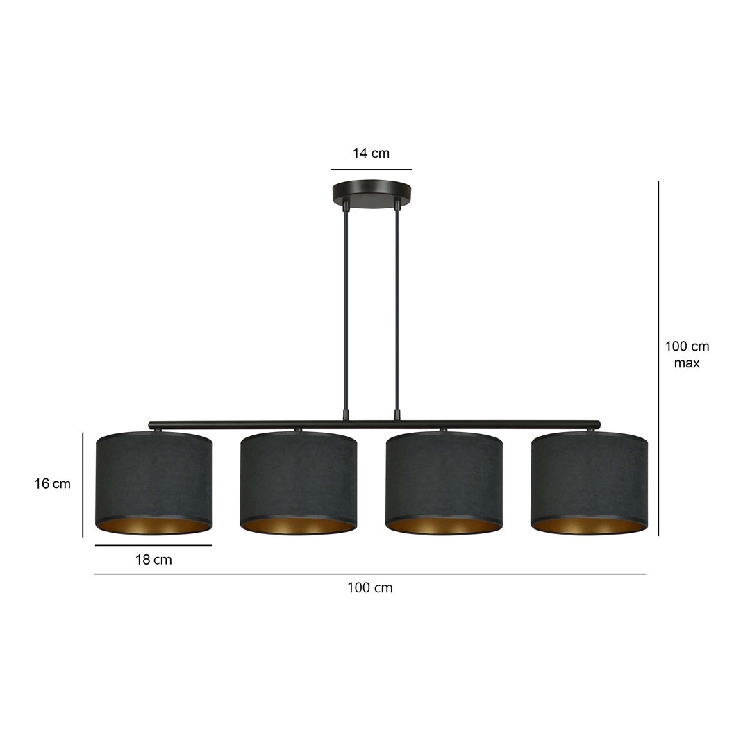 Die HILDE 4 BL BLACK Pendelleuchte ist die perfekte Wahl für moderne Innenräume. Mit ihrem eleganten, minimalistischen Design und der Kombination aus pulverbeschichtetem Stahl und einem schwarzen Stoffschirm schafft sie eine stilvolle Atmosphäre.