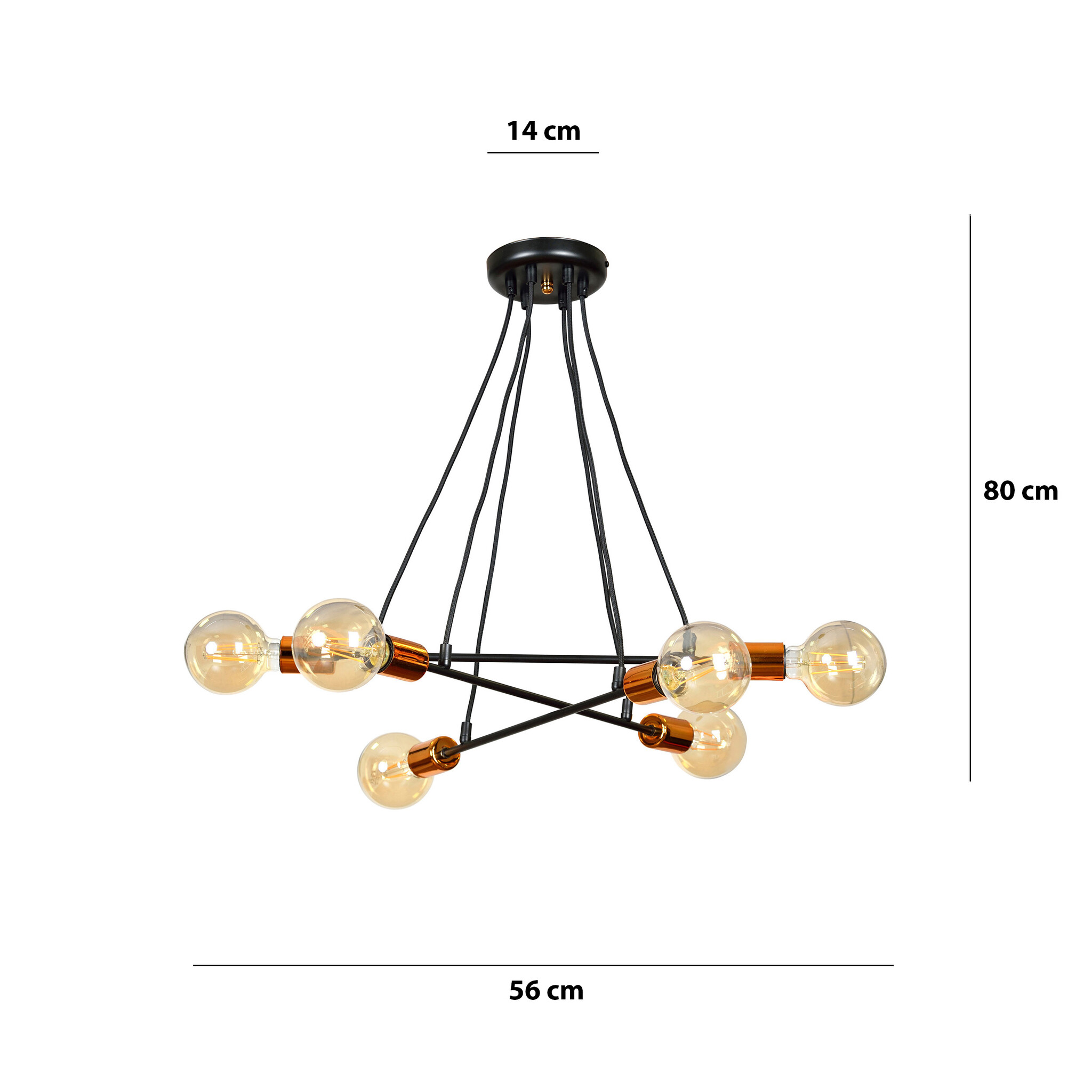 Spezifikationen Hollola 6L schwarze Hängelampe mit Kupfer E27: