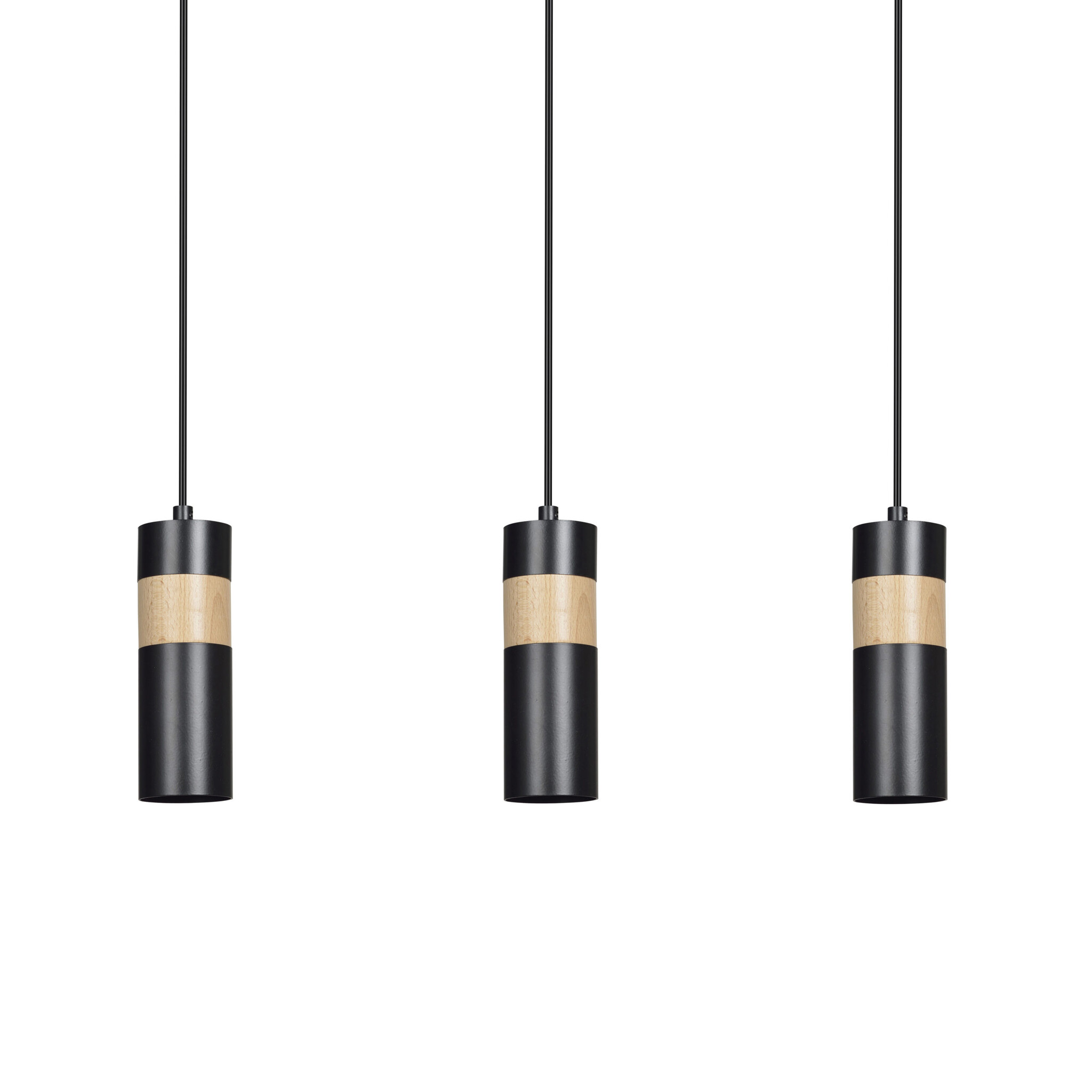 Kerava lange 3L-Hängelampe aus Schwarz und Holz, 3x GU10