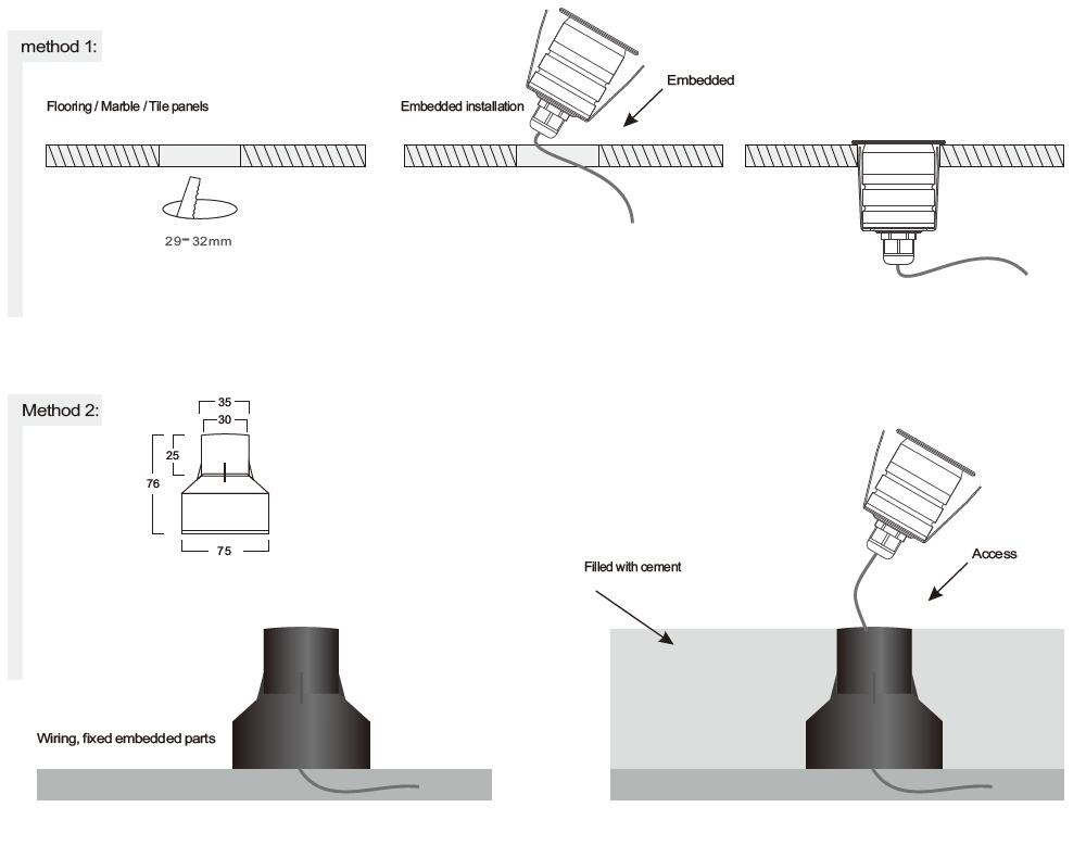 Sie arbeitet mit 10 bis 30 V Gleichspannung und ist aus verstärktem Glas, sodass sie auch in die Terrasse eingebaut werden kann. Dieser kleine wasserdichte Einbaustrahler ist mit einem 100 cm langen Kabel ausgestattet. Sie können die Spots mit den entsprechenden Verbindern miteinander verbinden. Wenn Sie das tun, sind sie etwa 75 cm voneinander entfernt. Möchten Sie eine längere Länge? Dann fragen Sie uns.