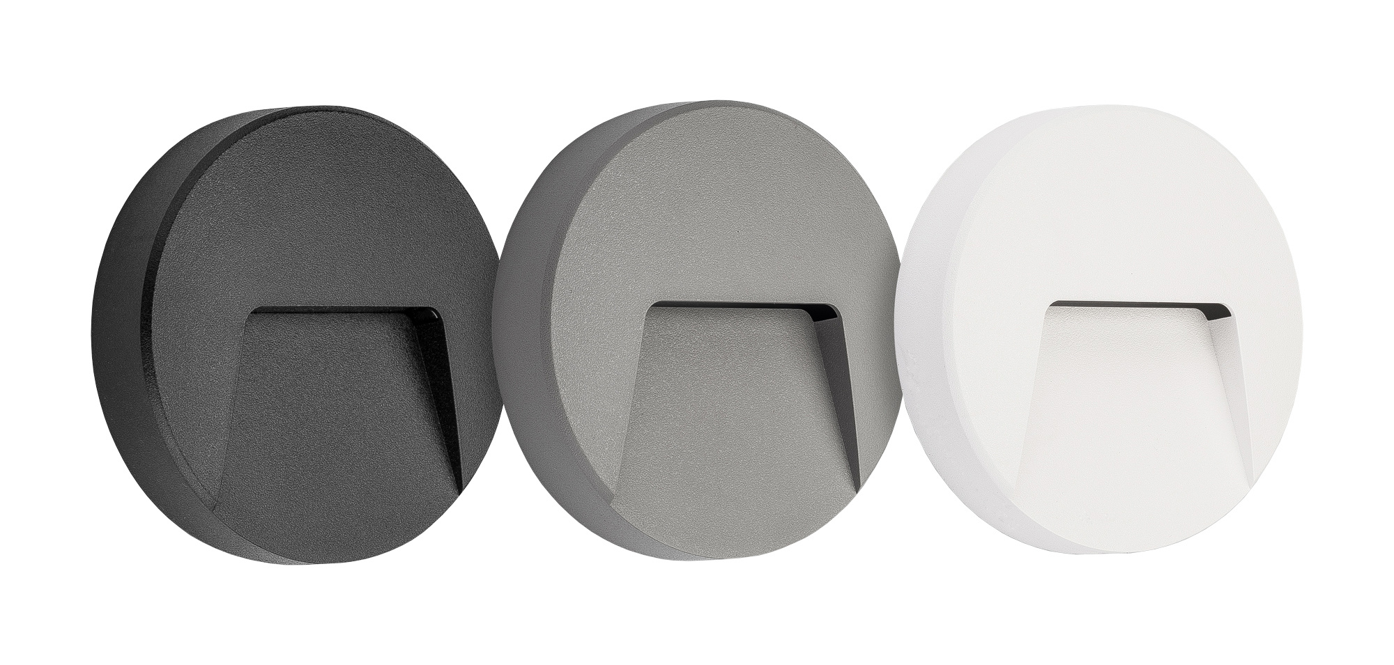 Kompakte Wandbeleuchtung IP65, geliefert in 3 Farben, 2,8 W, rund