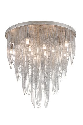 Es ist so konstruiert, dass von der verchromten Deckenträgerplatte mehrere schön gebogene Metalldrähte nach unten fallen.