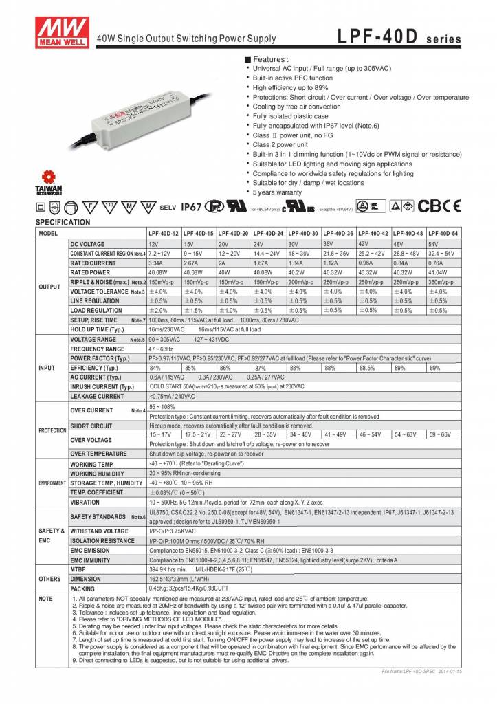Meanwell-Treiber gehören zu den besten LED-Treibern auf dem Markt! Dieser Meanwell LED-Treiber ist dimmbar und für 40W geeignet.