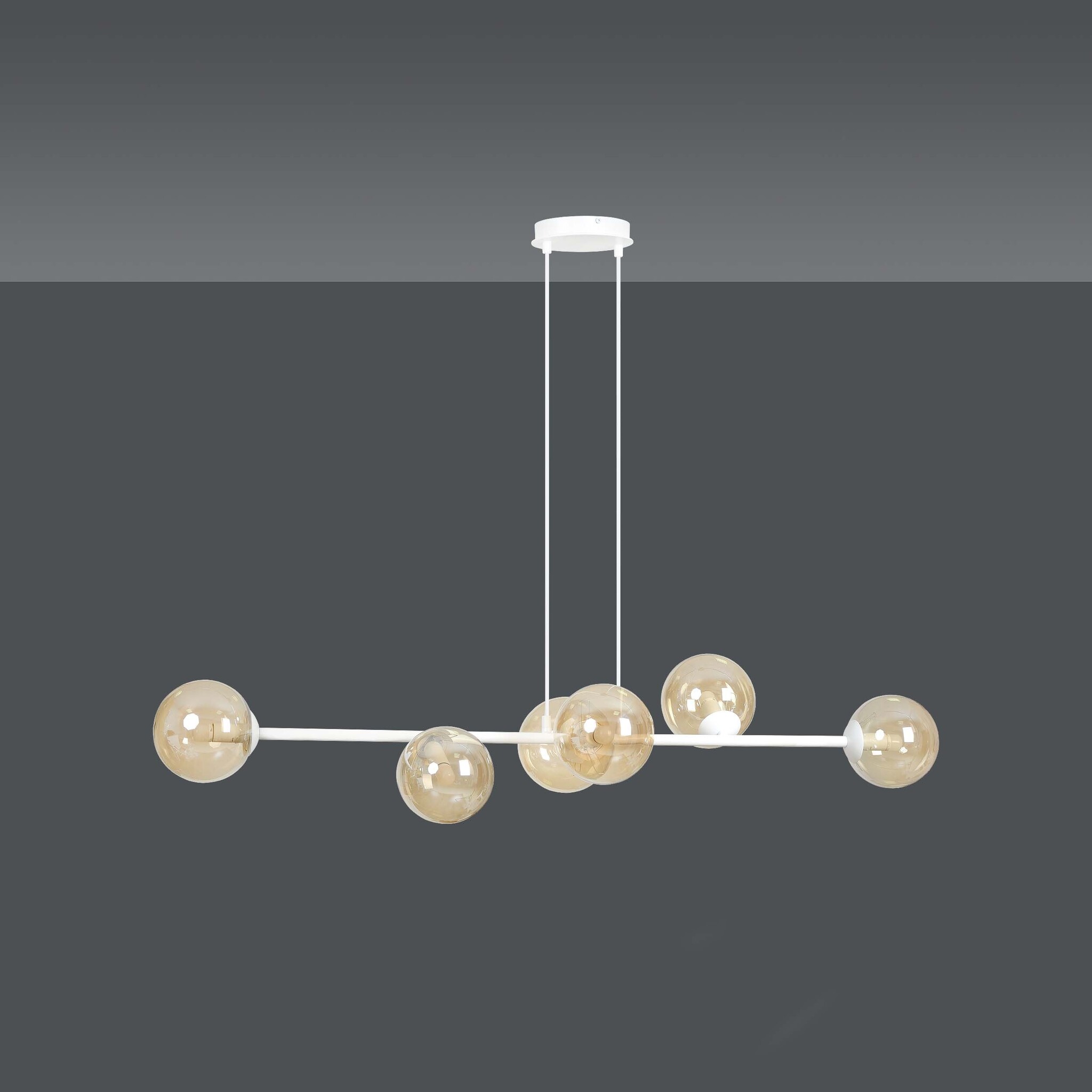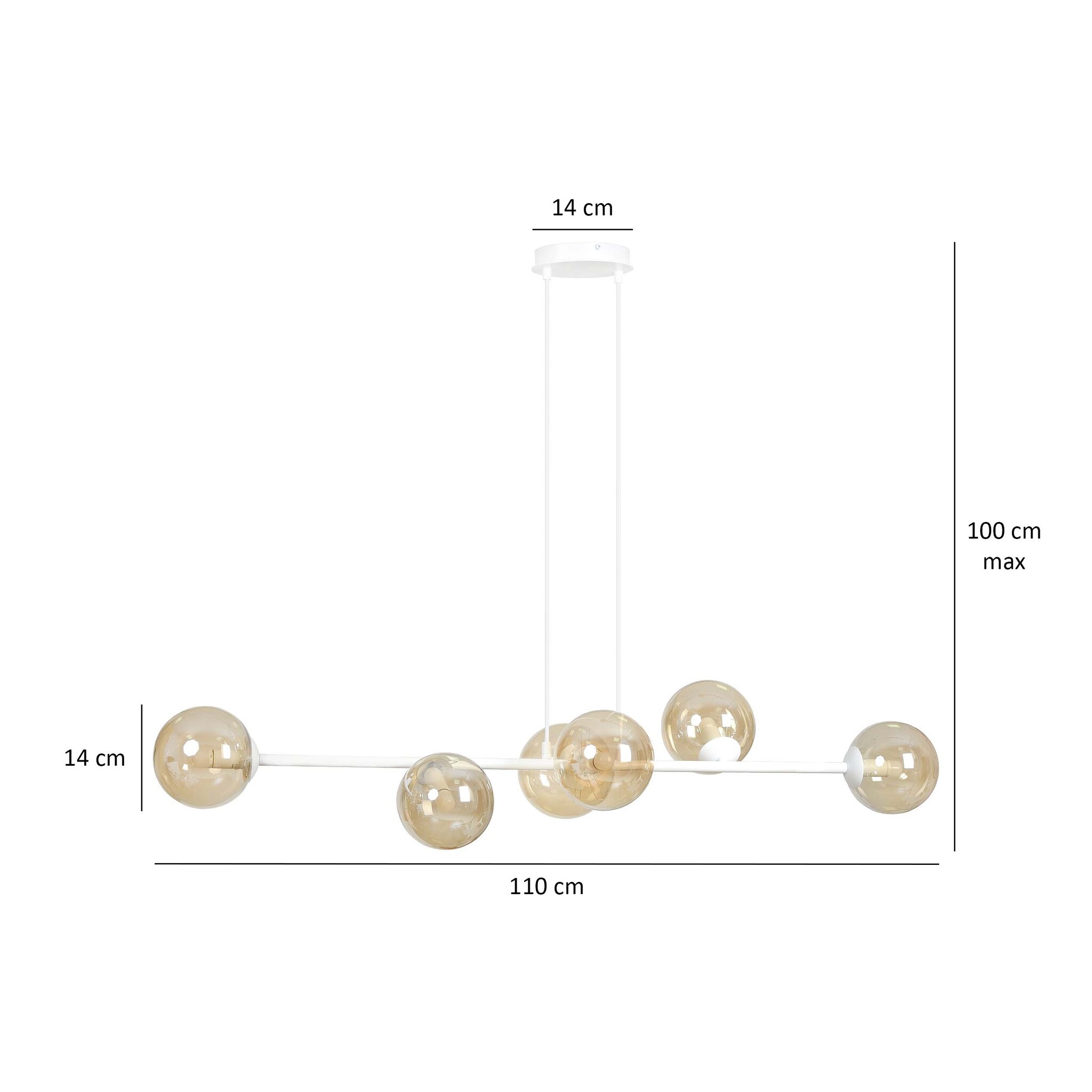 Spezifikationen Lejre schöne weiße 6-flammige mittelgroße E14-Hängelampe mit 6 bernsteinfarbenen Glühbirnen: