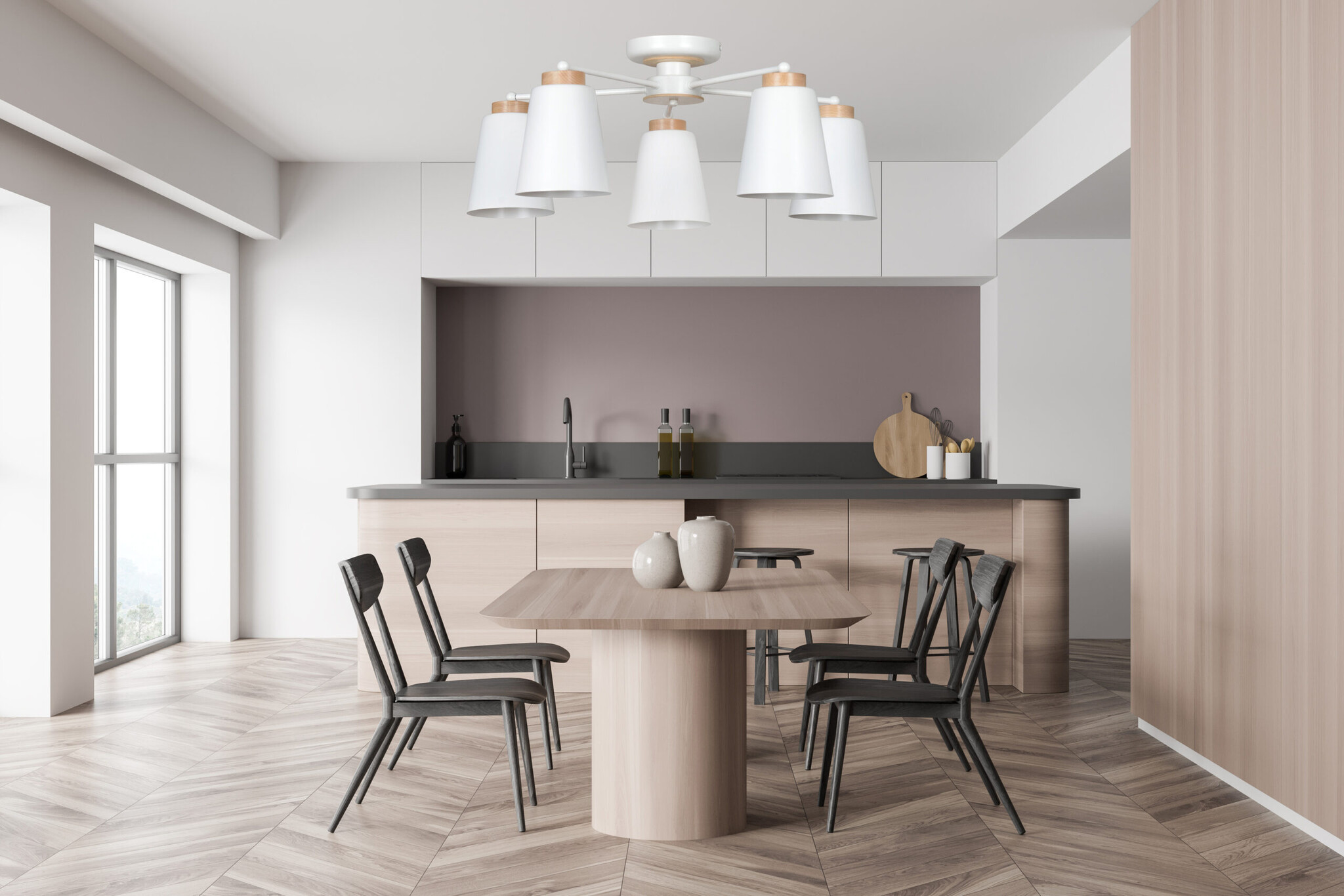Linkoping 5L weiß mit Holz Deckenleuchte 5 Lampenschirme Metall E27