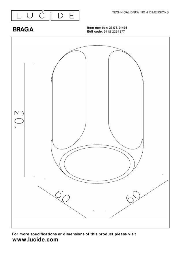 Spezifikationen Lucide BRAGA - Deckenleuchte - 1xGU10 - Kaffee: