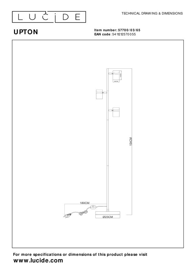 Spezifikationen Lucide UPTON - Stehleuchte - 3xGU10 - Fumé: