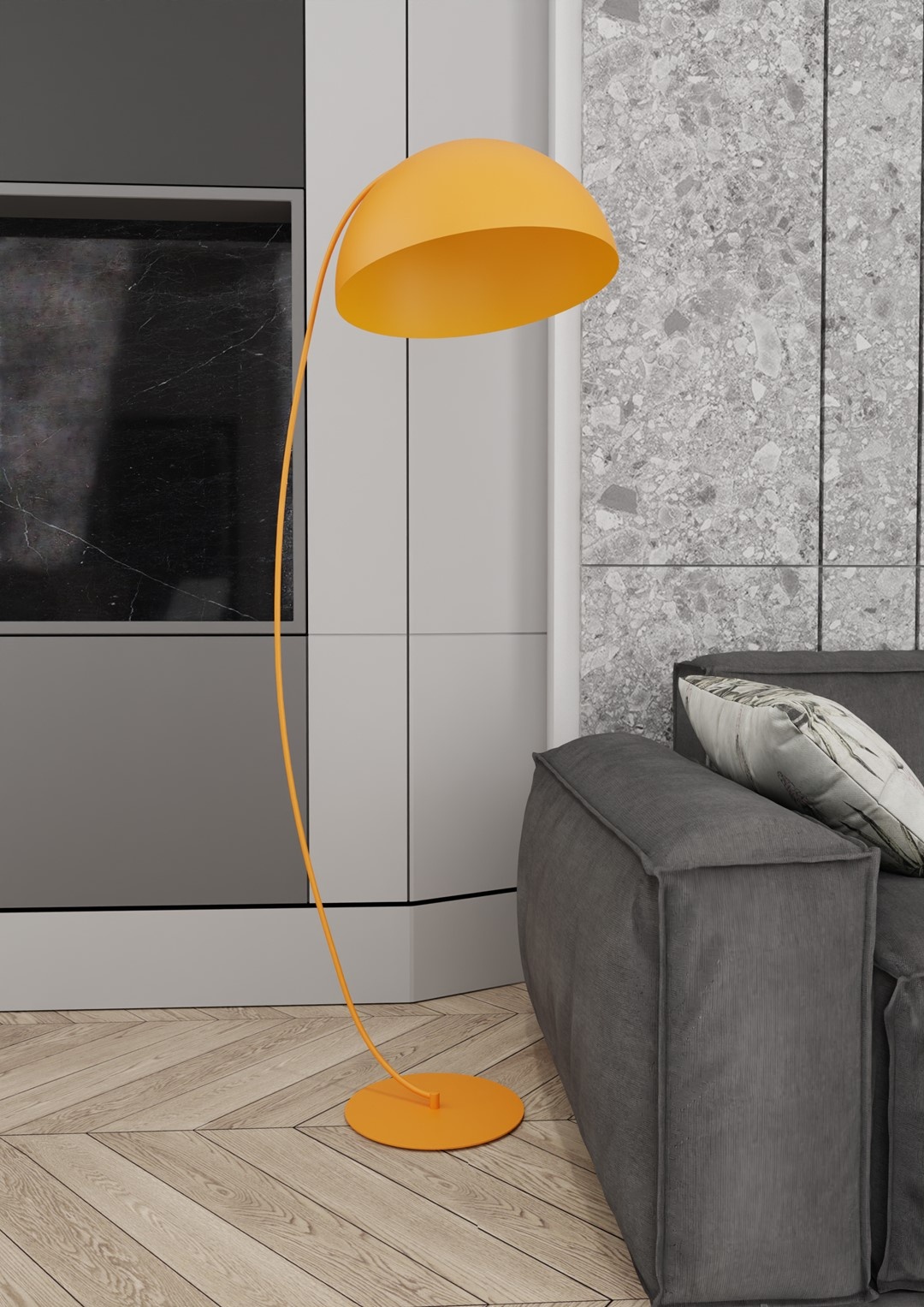 Hergestellt aus pulverbeschichtetem Stahl, bietet diese Lampe Langlebigkeit und ein zeitgemäßes Aussehen. Der orangefarbene Schirm sorgt für eine warme und einladende Atmosphäre.