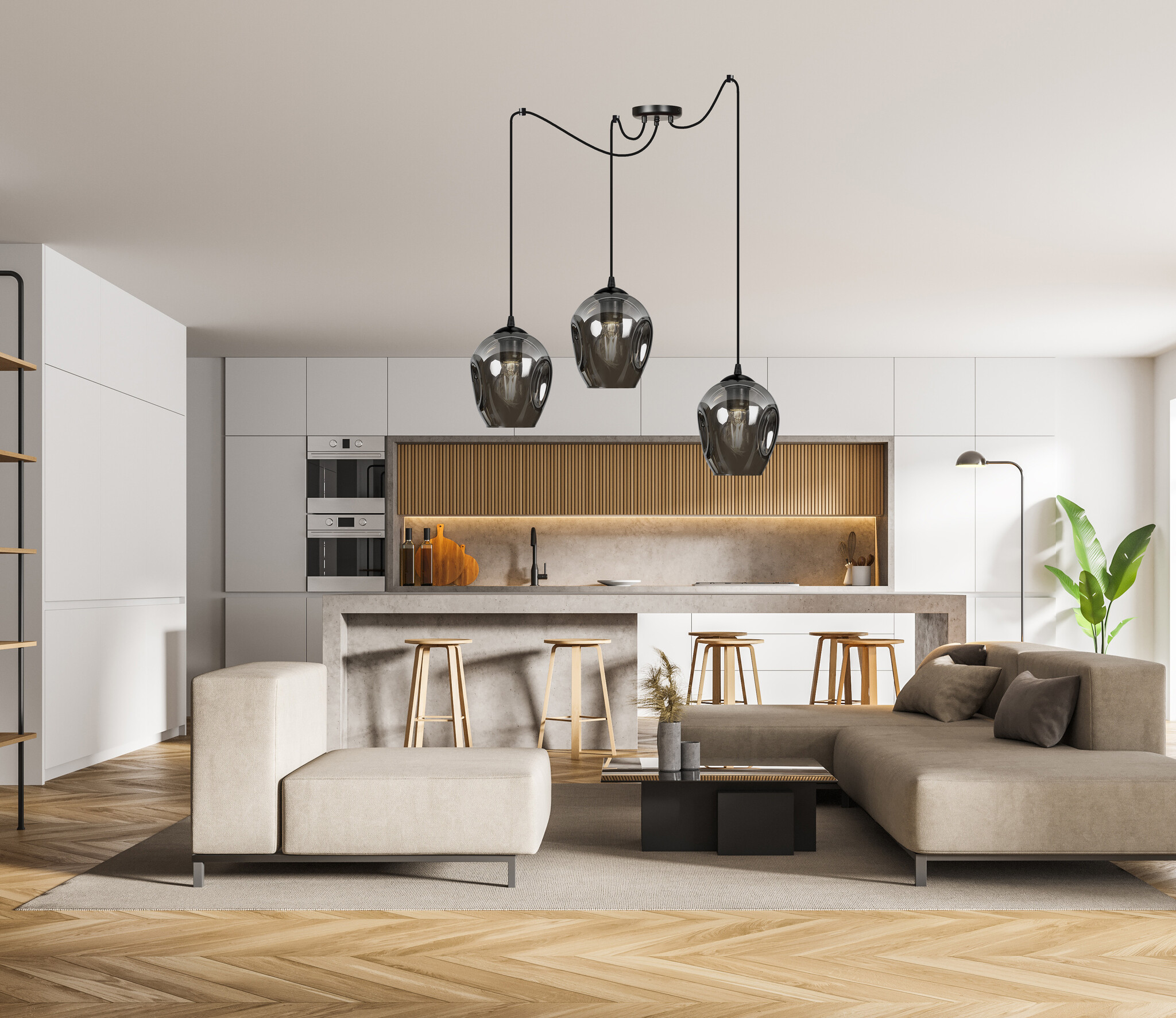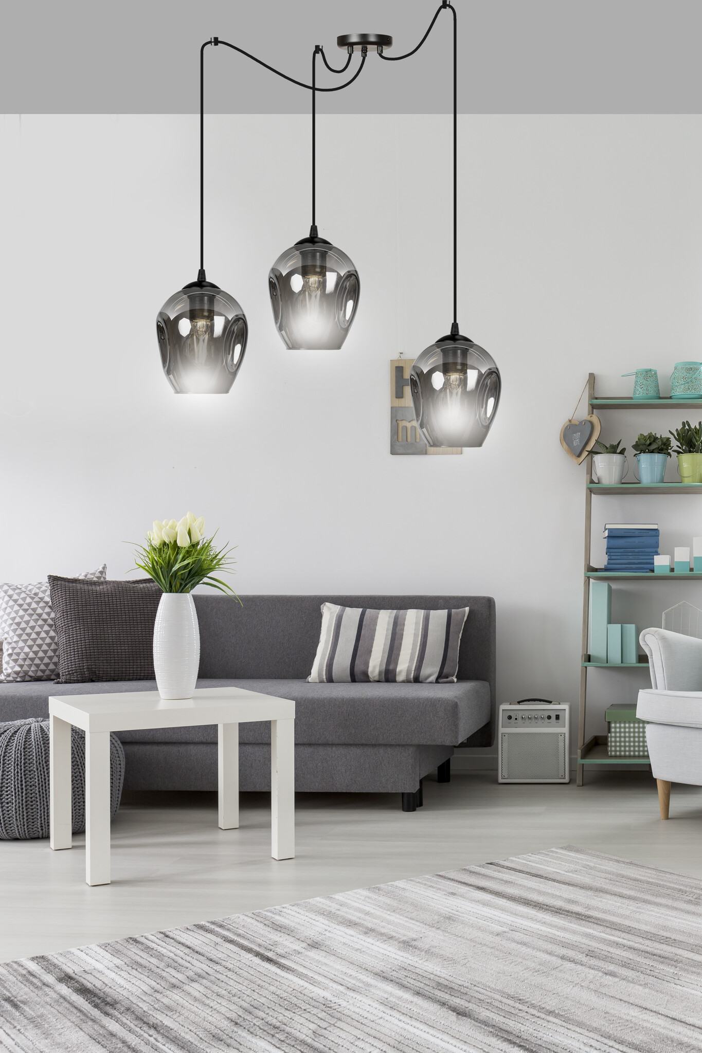 Malmo 3L-Pendelleuchte, rauchgebrannt, E27, dezentralisierbar