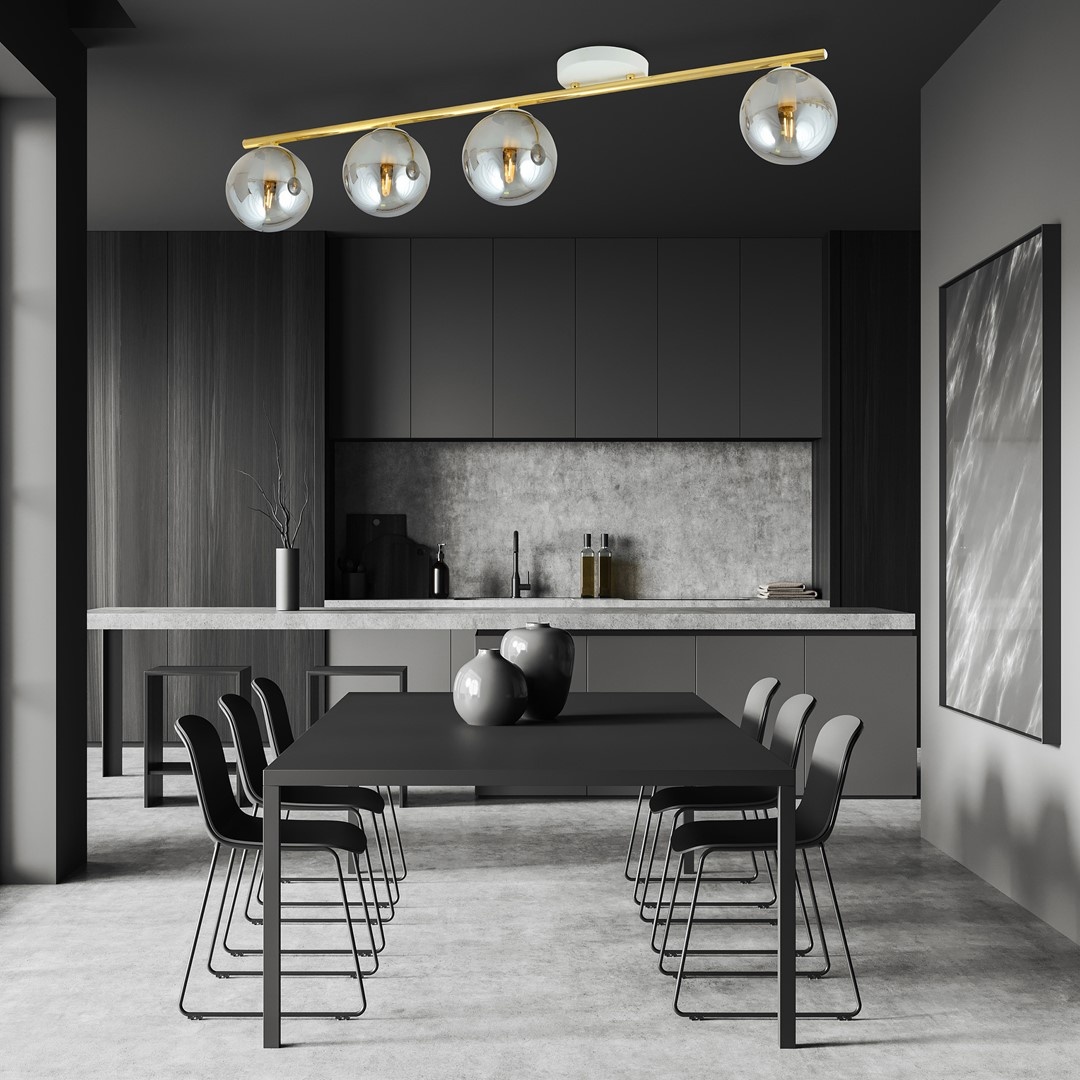 Die Emibig MONZA 4 WH GRAFIT Deckenlampe ist die perfekte Wahl für jeden modernen Raum. Mit ihrem eleganten, grafitfarbenen Lampenschirm und den goldenen Akzenten bringt sie Stil und Atmosphäre in Ihr Zuhause.