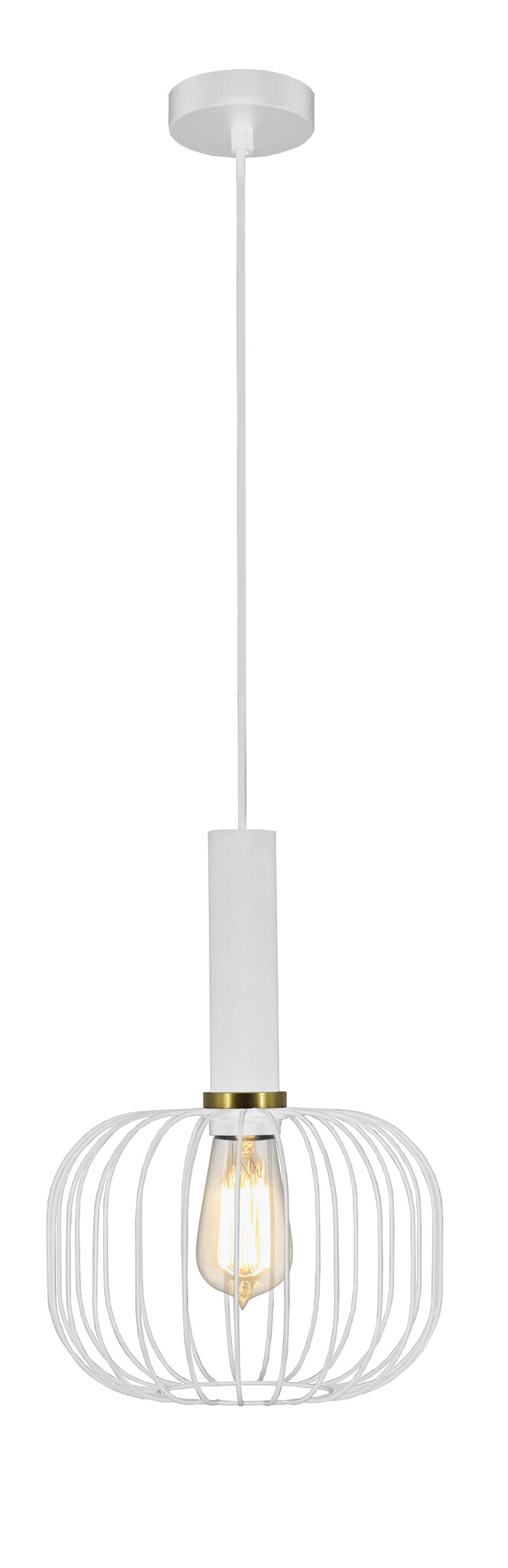 Noah 1xE27 D250xH360 Weiß / Gold + 3m Kabel weißer Stoff