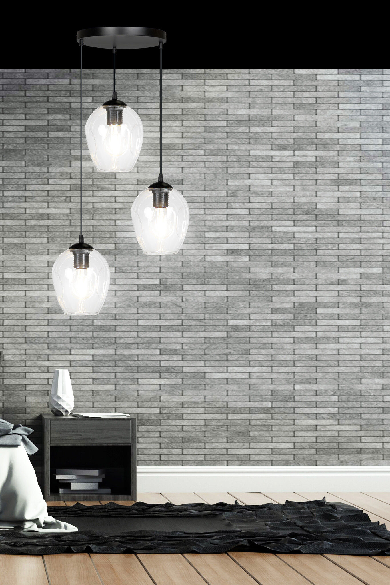 Nokia runde 3L transparente Glas-Hängelampe 3x E27