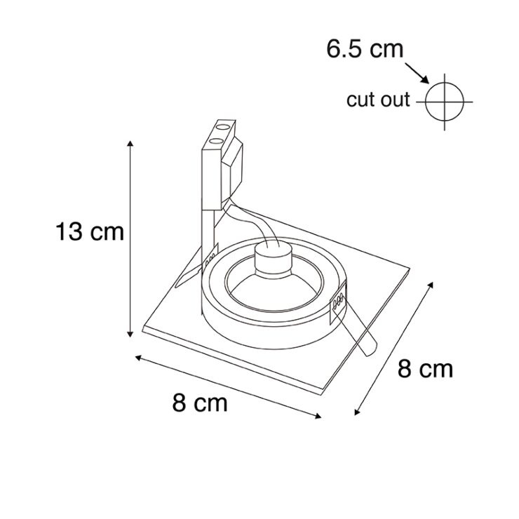 Die Außenmaße betragen 80 x 80 mm und die Öffnung beträgt 65 mm. Die Höhe beträgt 40 mm, allerdings muss die Einbautiefe größer sein, da darin ein Strahler platziert werden muss. Dieser Einbaustrahler ist in der Farbe Hellgold erhältlich und hat eine quadratische Form.