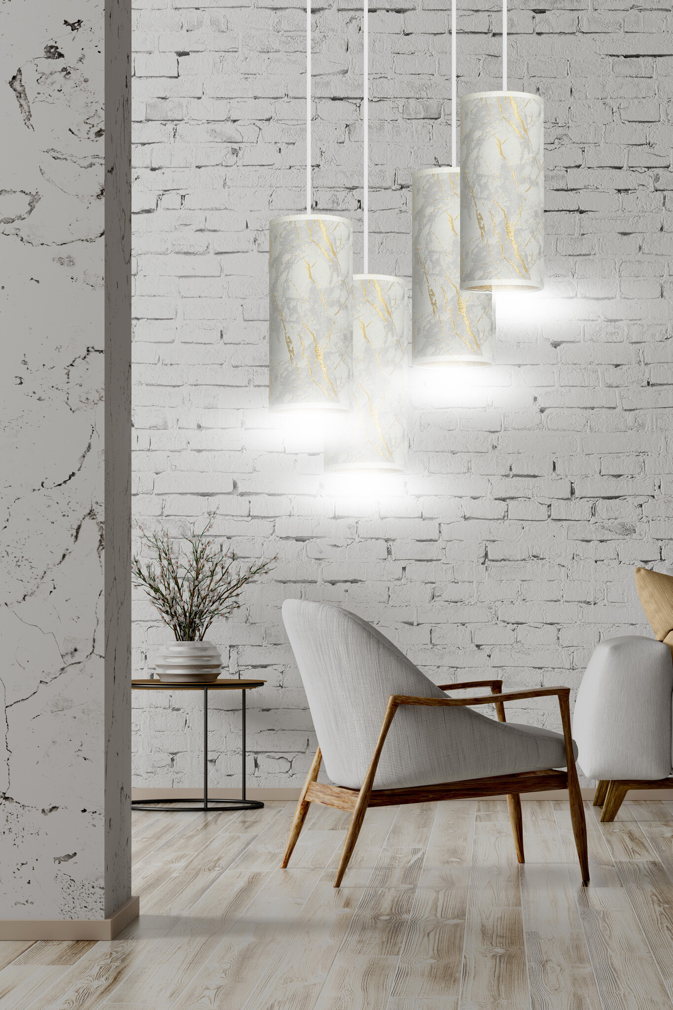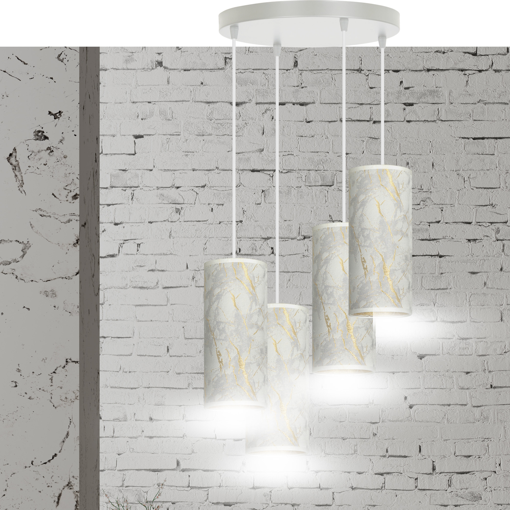 Ringsted große runde Pendelleuchte mit 4 Röhren aus weißem Marmor 4x E27