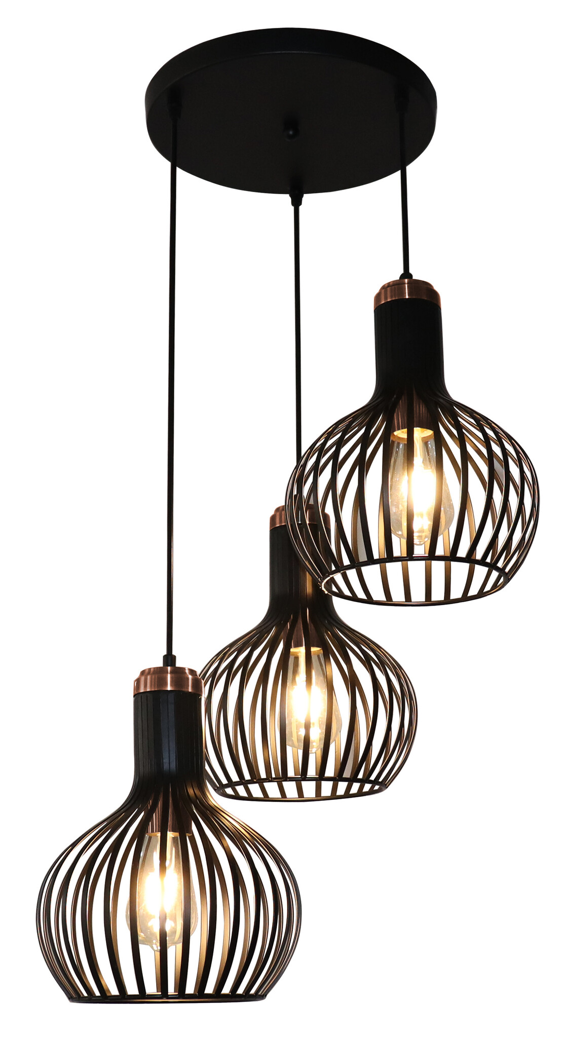 Rio 3x E27 Pendelleuchte schwarz + kupfer