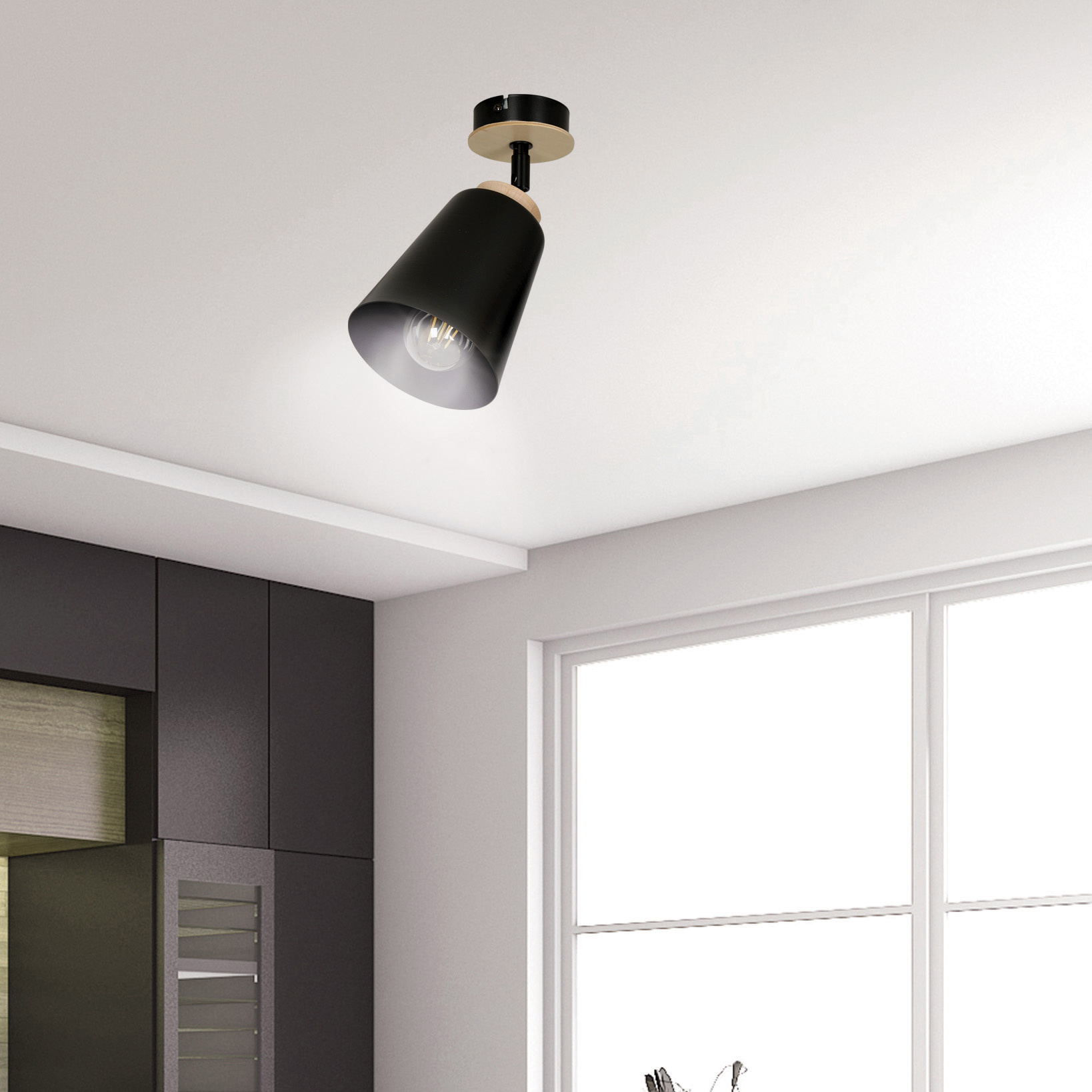 Salo schwarze Deckenleuchte Schwarz und Holz 1x E27