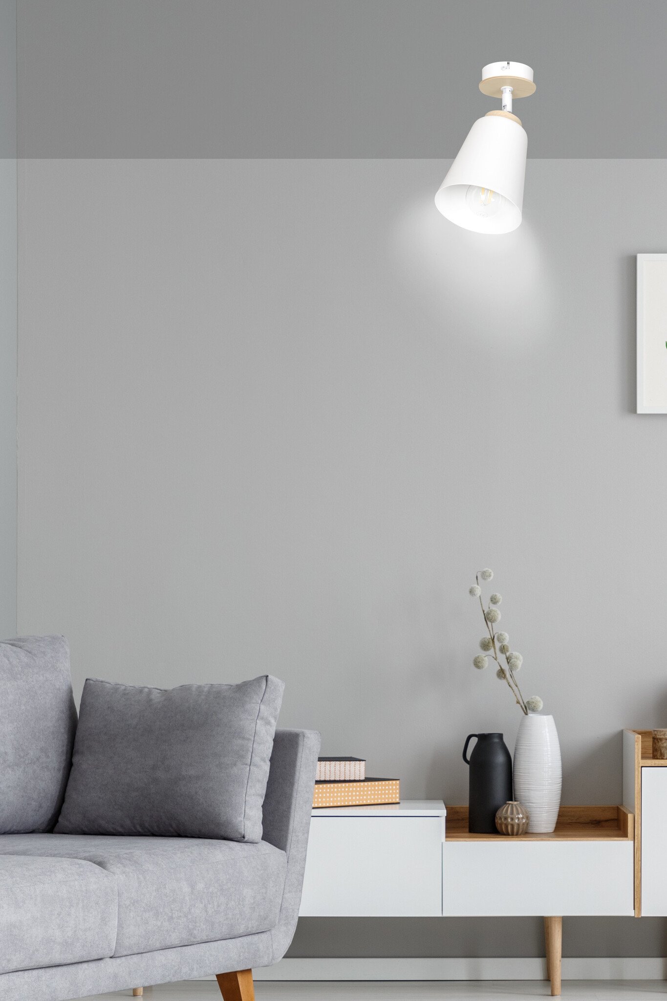 Salo weiße Deckenleuchte weiß und Holz 1x E27