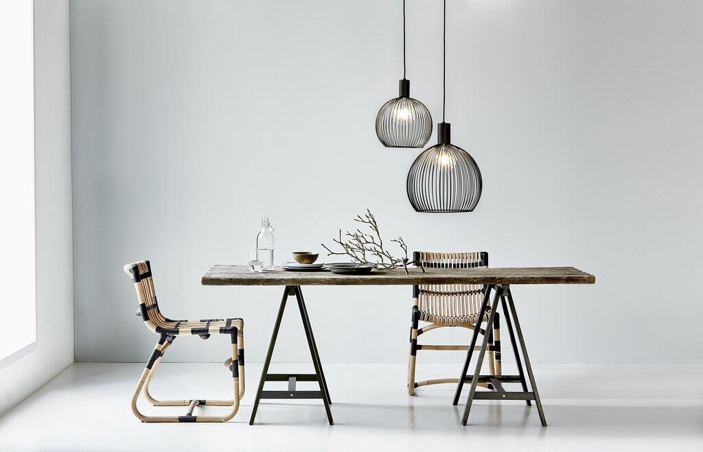 Wenn Sie auf der Suche nach einer stilvollen Pendelleuchte sind, haben Sie einen Gewinner gefunden: ein schlichter, ästhetischer und gebogener Metalldraht in Schwarz E27 mit 30 cm Ø. Es existiert auch in verschiedenen Formaten und ist hier zu finden.