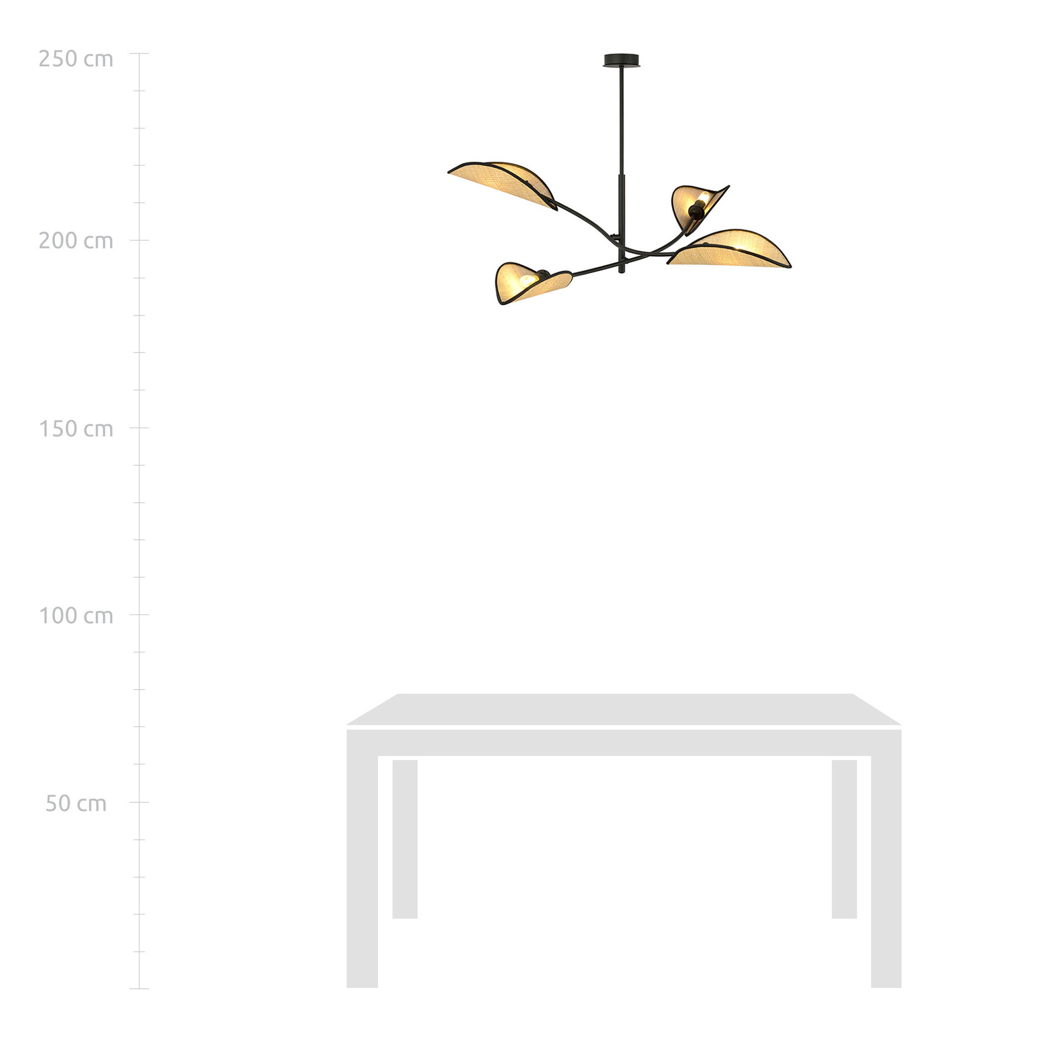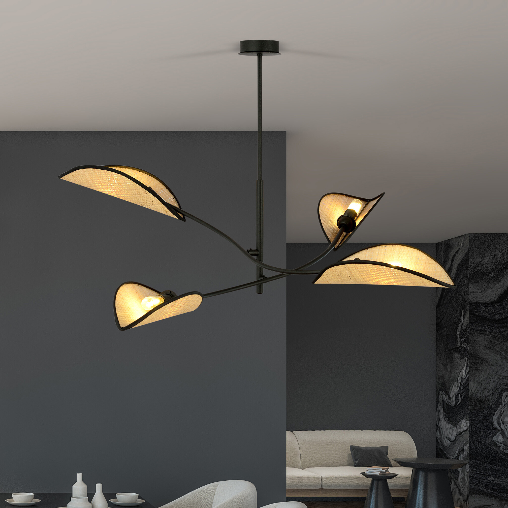 Schwarz mit Rattan-Hängelampe mit 4 Armen und transparenten Blättern
