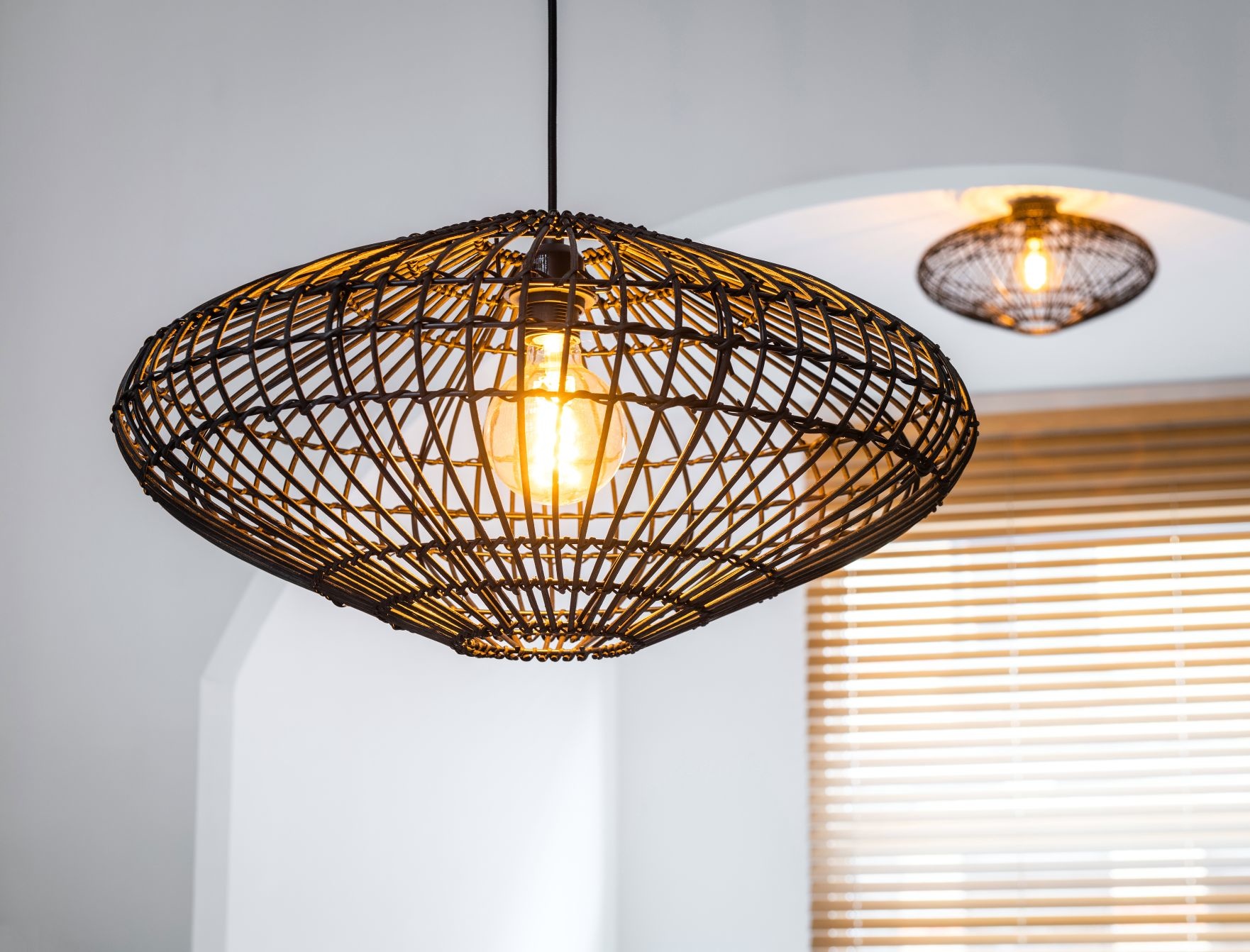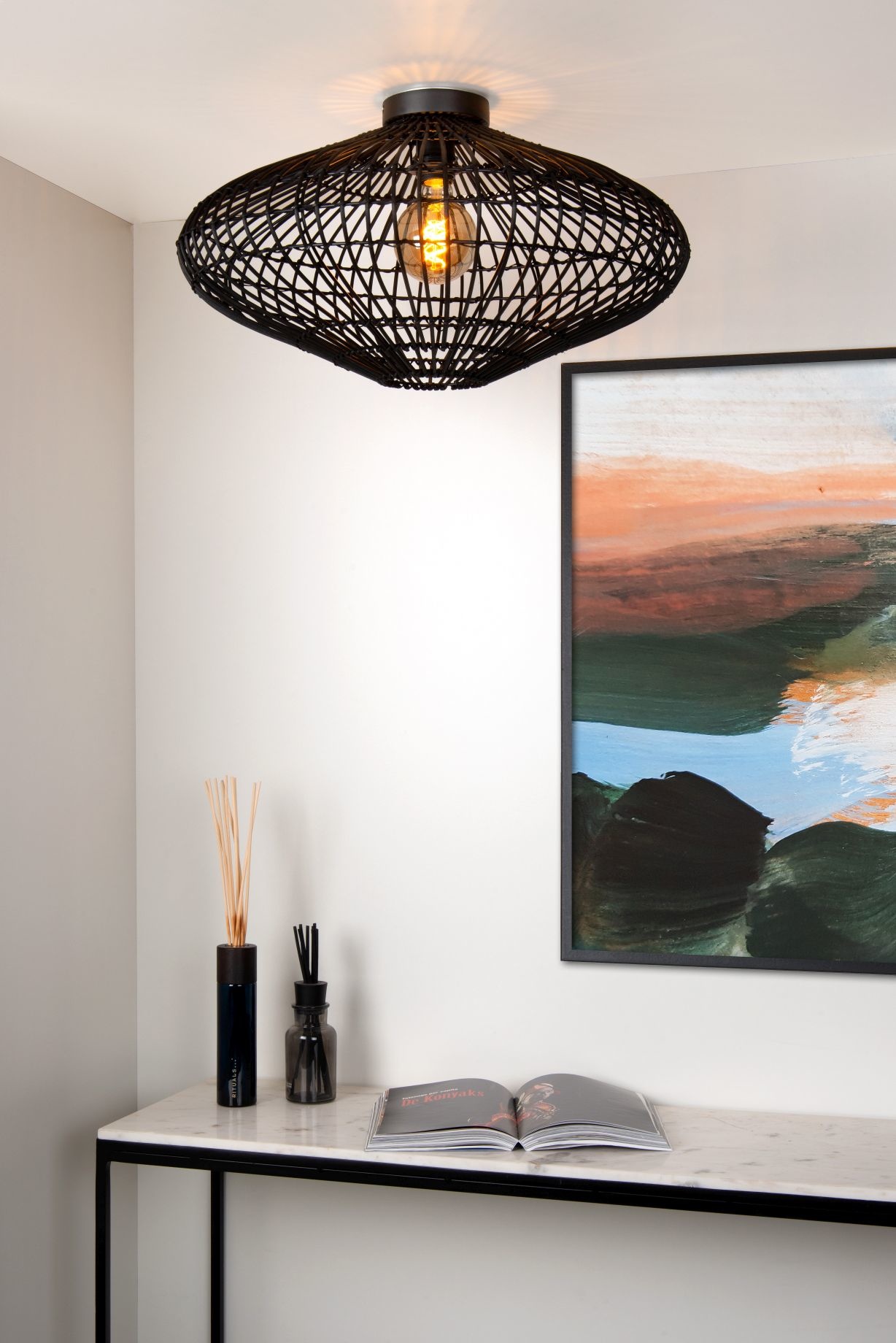 Schwarze Rattan-Deckenleuchte 56 cm E27 schwarz