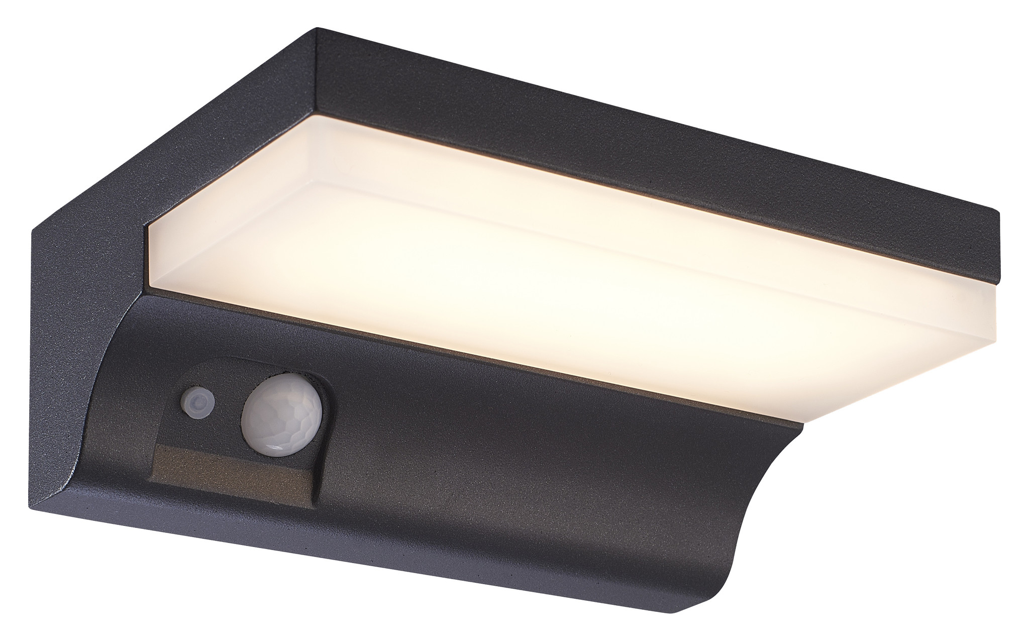 Schwarze Wandleuchte mit Solarpanel und Sensor 2W