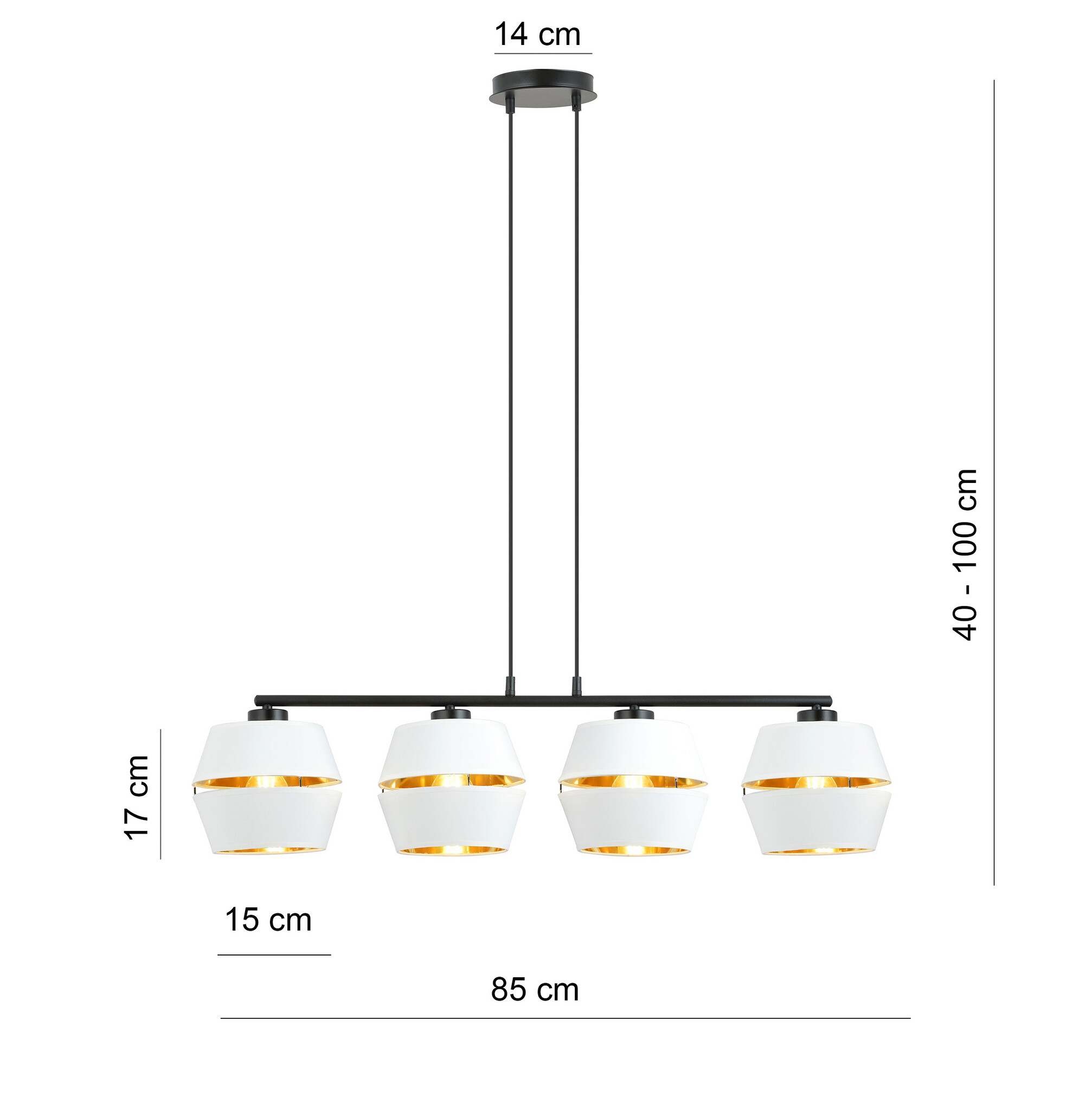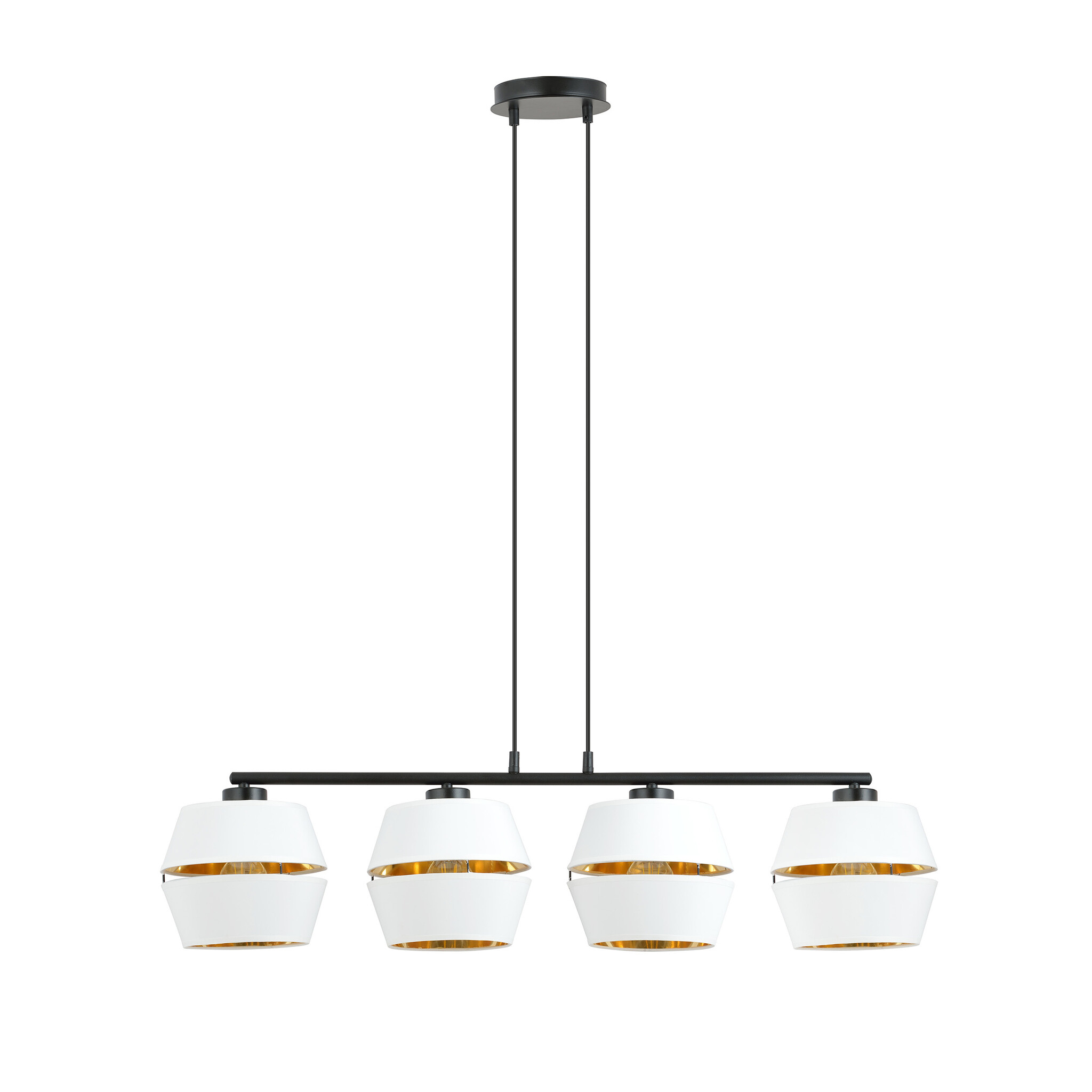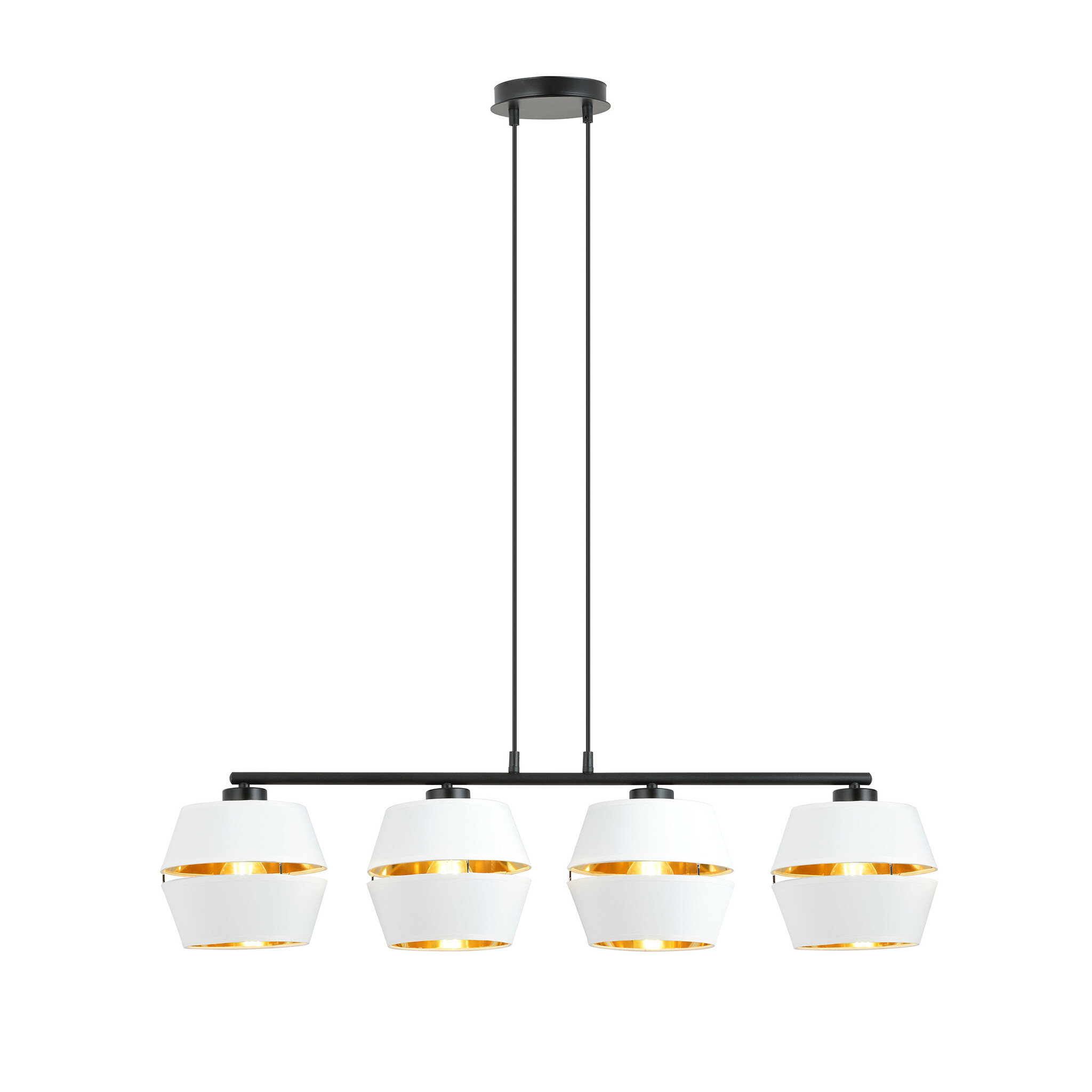 Wenn Sie auf der Suche nach Hängelampen in Weiß mit Gold sind, dann sind Sie bei Myplanetled.com genau richtig. Kaufen Sie diese schwarze Pendelleuchte 4x E27 weiß mit Goldkappen aus Metall und wir liefern sie Ihnen schnell und mit größter Sorgfalt. Sie können uns auch für mehrere Stücke oder den professionellen Kauf kontaktieren. Kontaktieren Sie uns per Chat, E-Mail oder Telefon und Sie werden von unserer Kompetenz und unserem Service überzeugt sein.