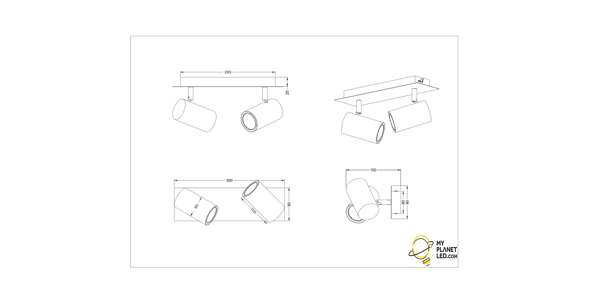 Wenn Sie auf der Suche nach einem schwarzen zweizylindrischen Deckenstrahler sind, dann sind Sie bei Myplanetled.com genau richtig. Kaufen Sie diesen schwarzen zweiteiligen drehbaren Deckenstrahler 2xGU10 und wir liefern ihn Ihnen schnell und mit größter Sorgfalt. Sie können uns auch für mehrere Stücke oder den professionellen Kauf kontaktieren. Kontaktieren Sie uns per Chat, E-Mail oder Telefon und Sie werden von unserer Kompetenz und unserem Service überzeugt sein.