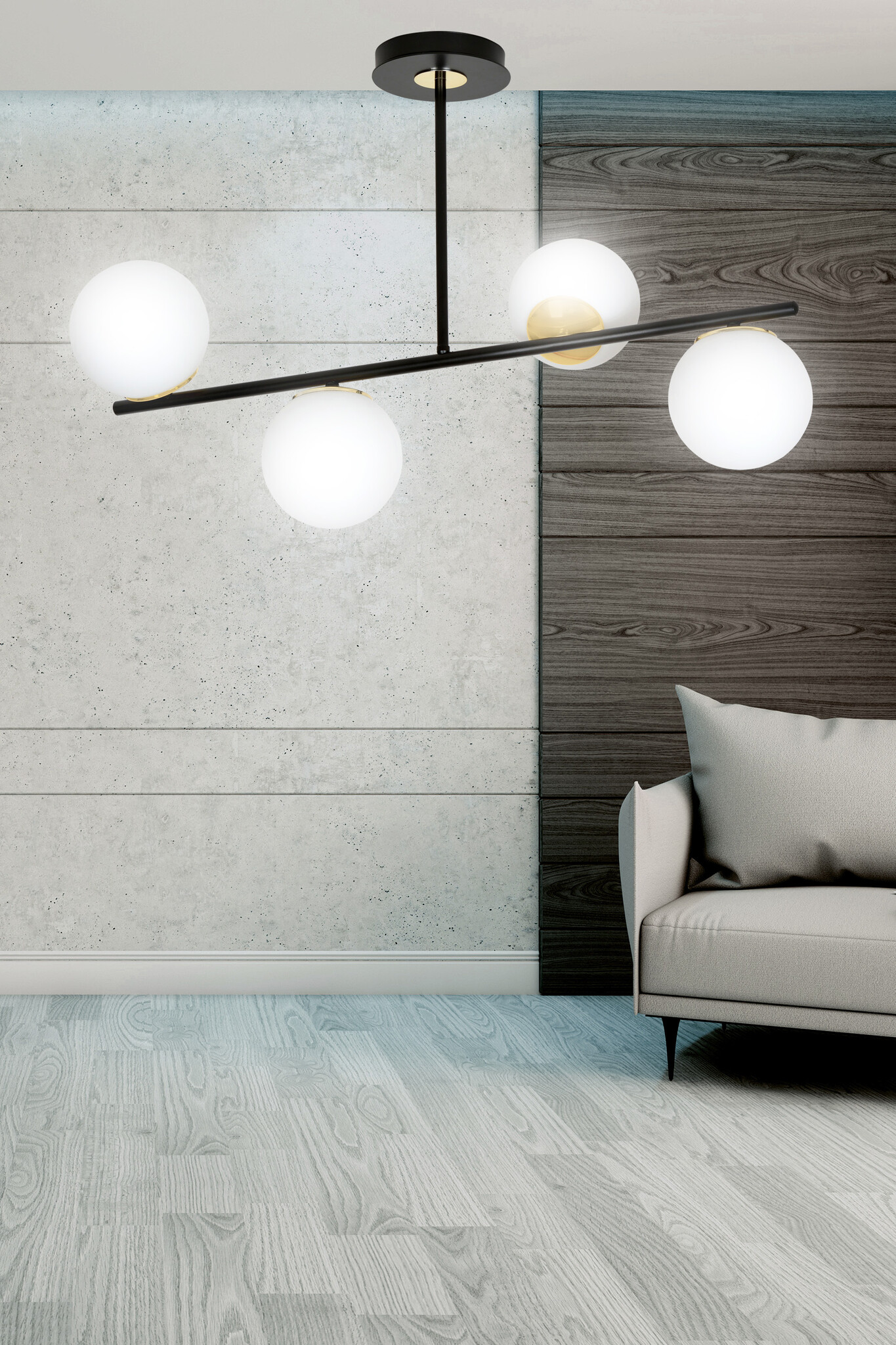 Struer Hängelampe schwarz und gold mit milchig weißen Glühbirnen 6x E14