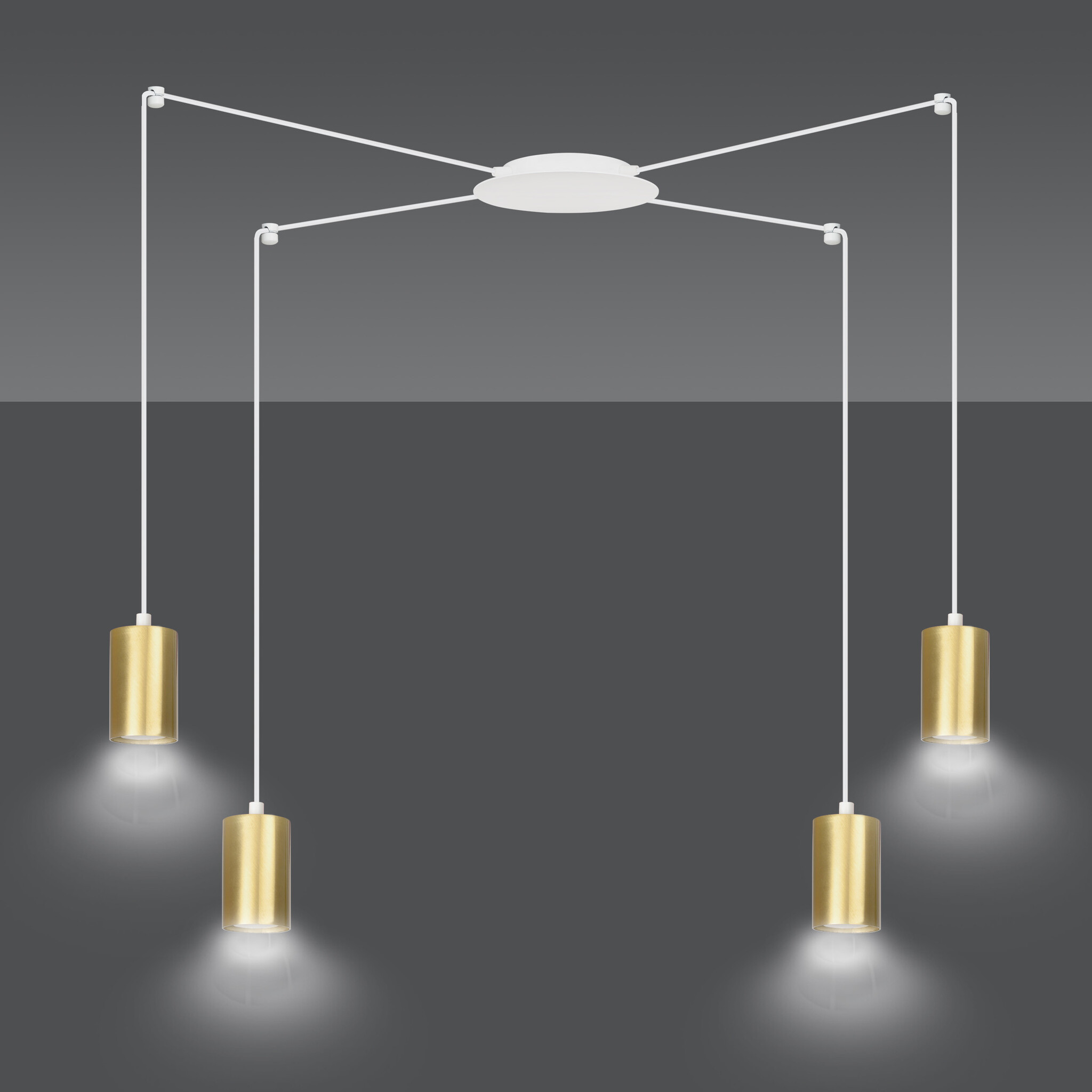 Spezifikationen Turku mittelgroße weiße Spinnen-Hängelampe mit 4 goldenen Röhren aus Metall GU10: