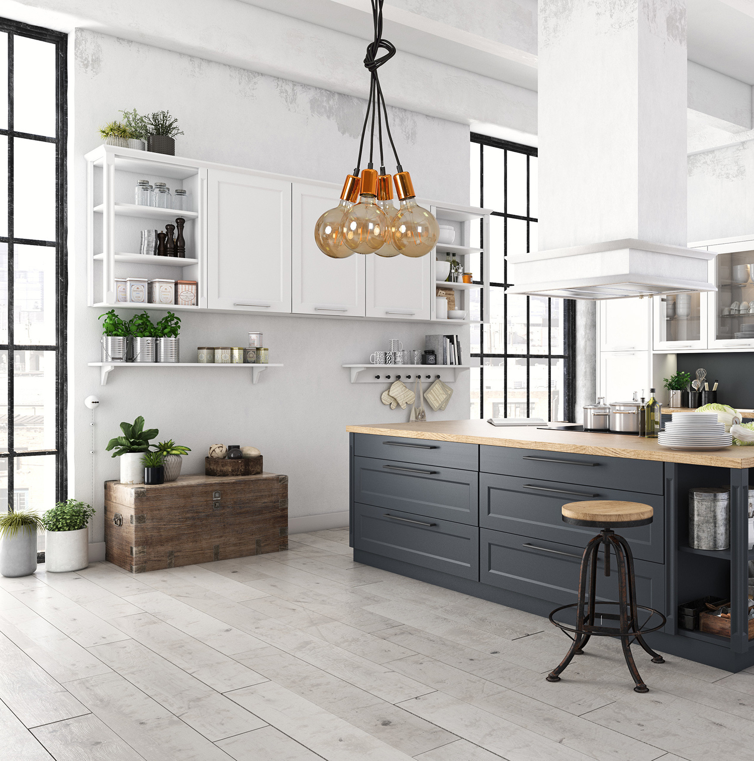 Spezifikationen Vasteras 4L Kupfer- und Schwarz-Hängelampe 4x E27-Pendel: