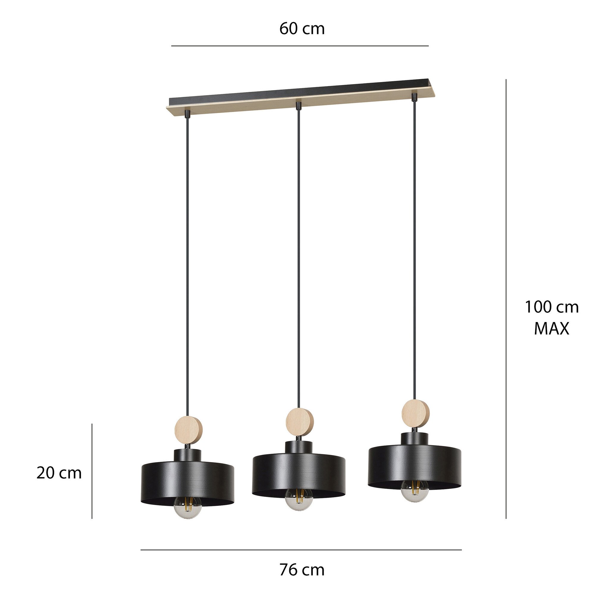 Vihti lange Hängelampe 3L schwarz mit Holzakzent 3x E27