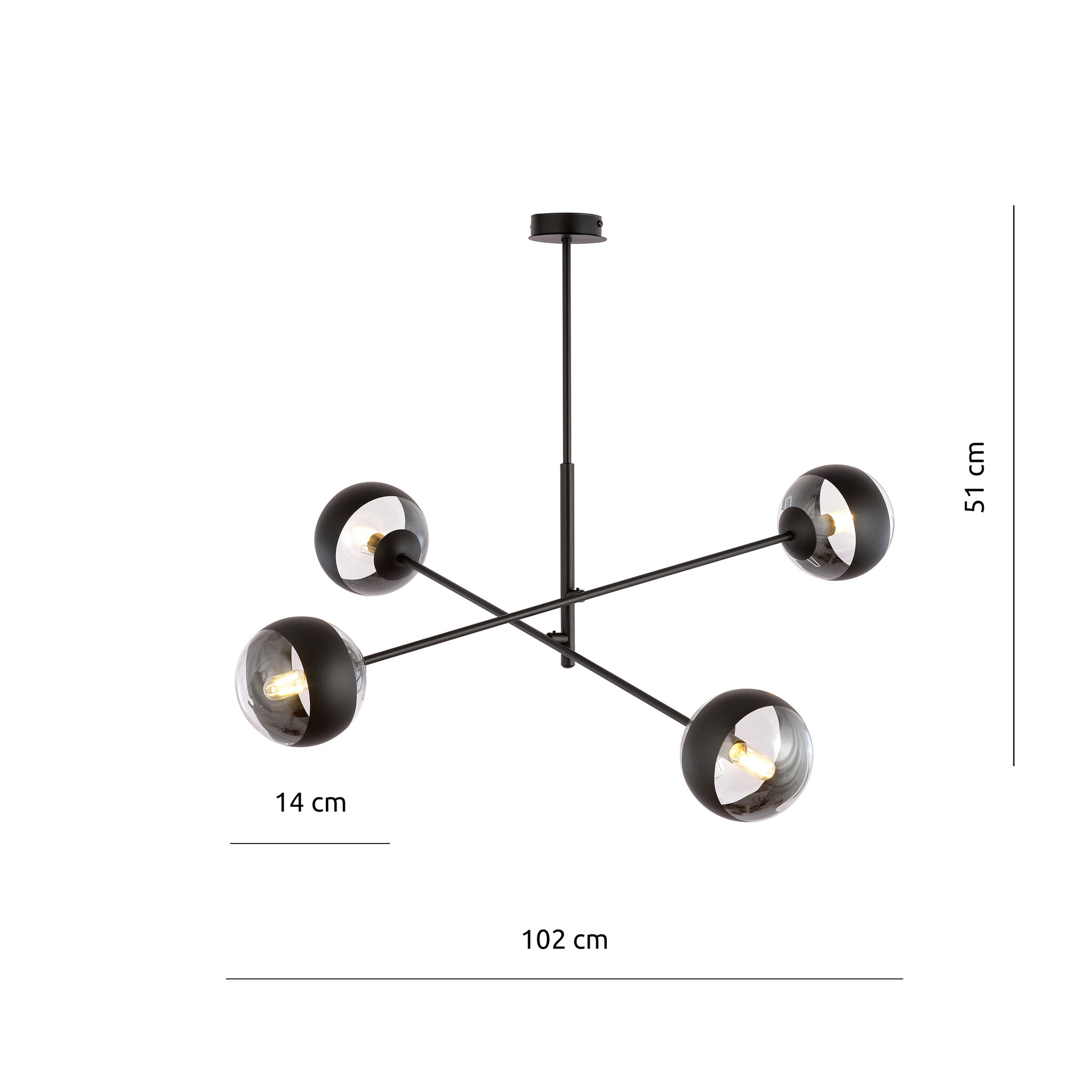 Spezifikationen Vordingborg mittelgroße Hängelampe schwarz mit 4 gestreiften Glasbirnen E14: